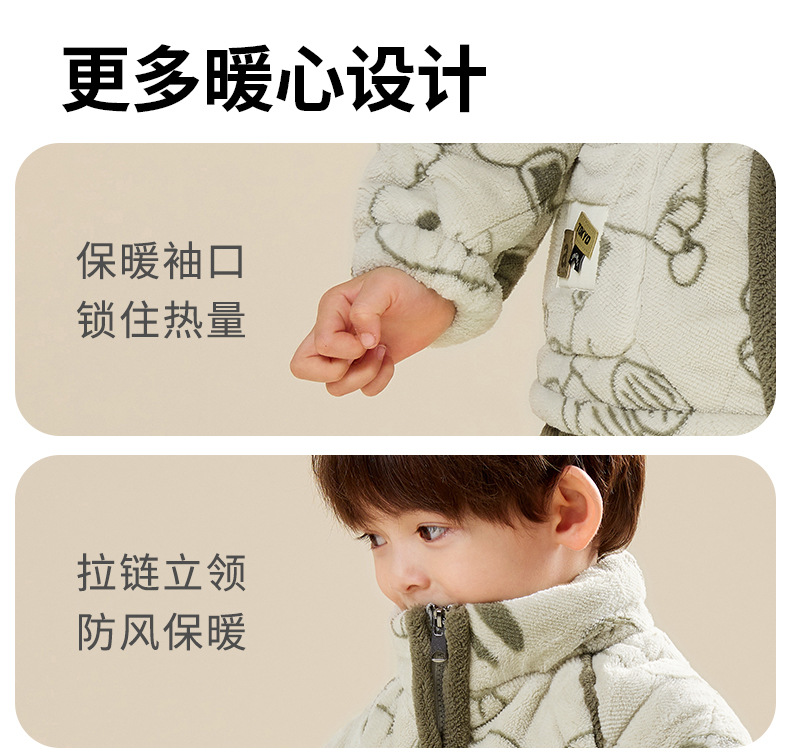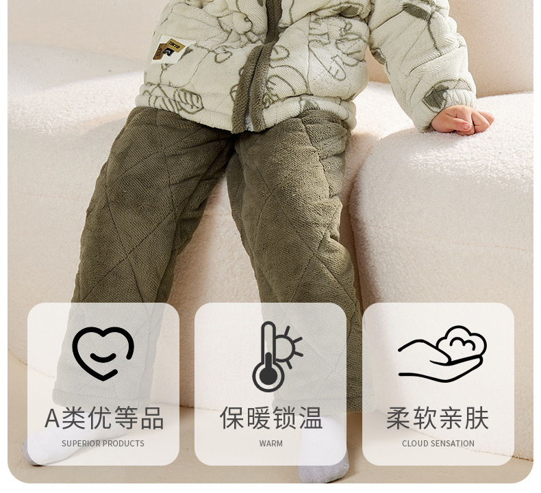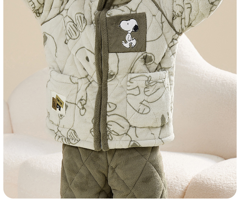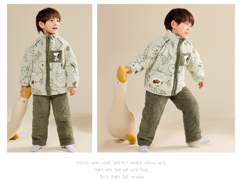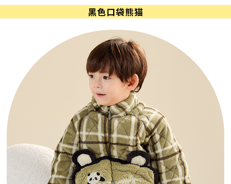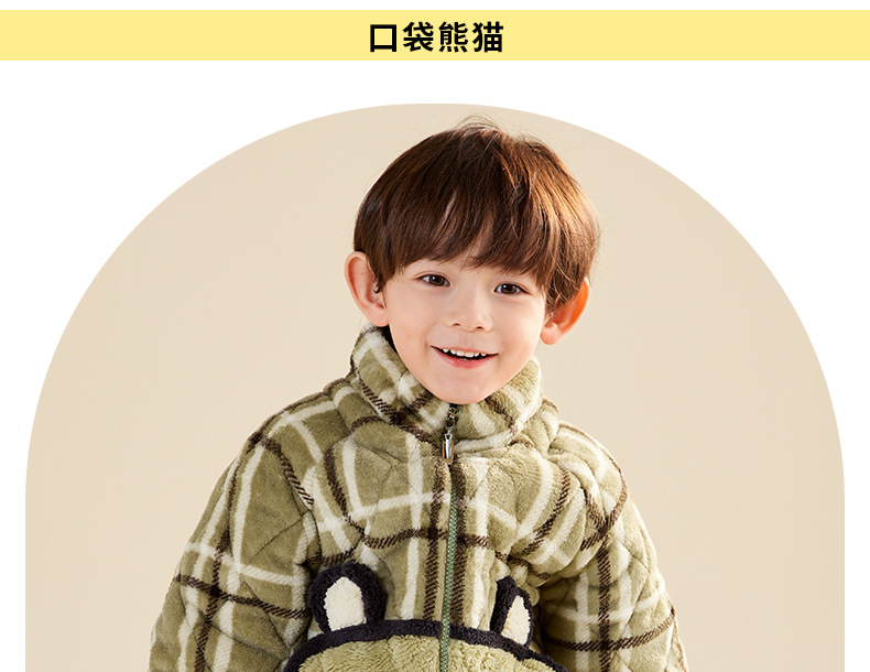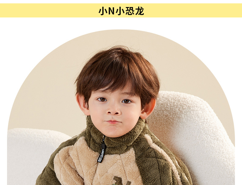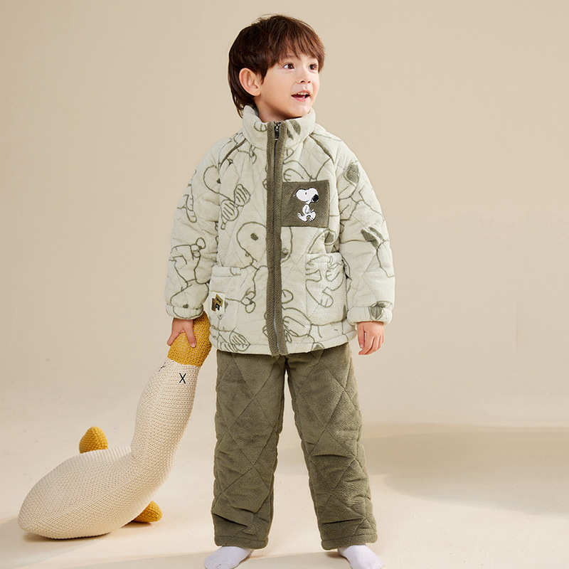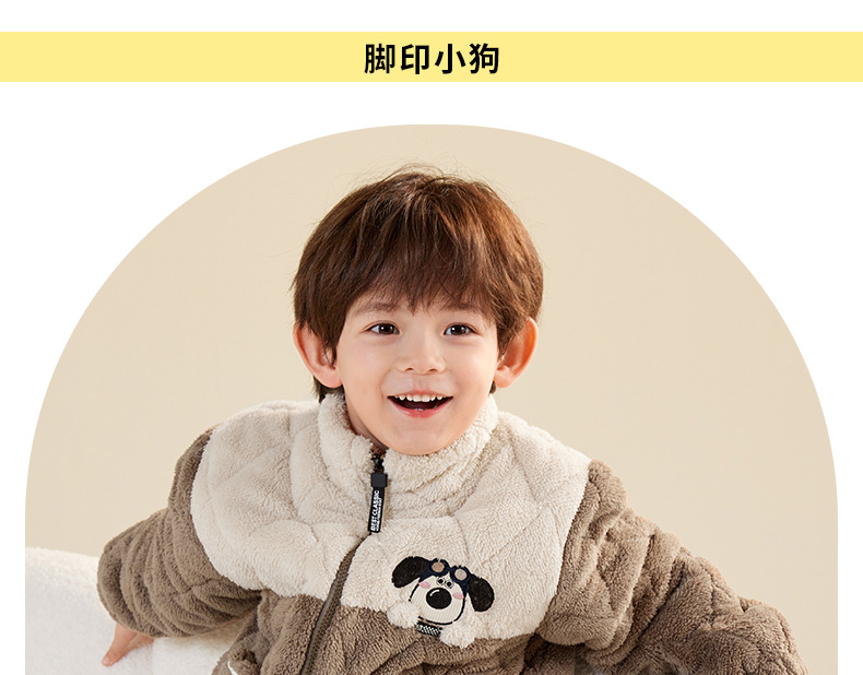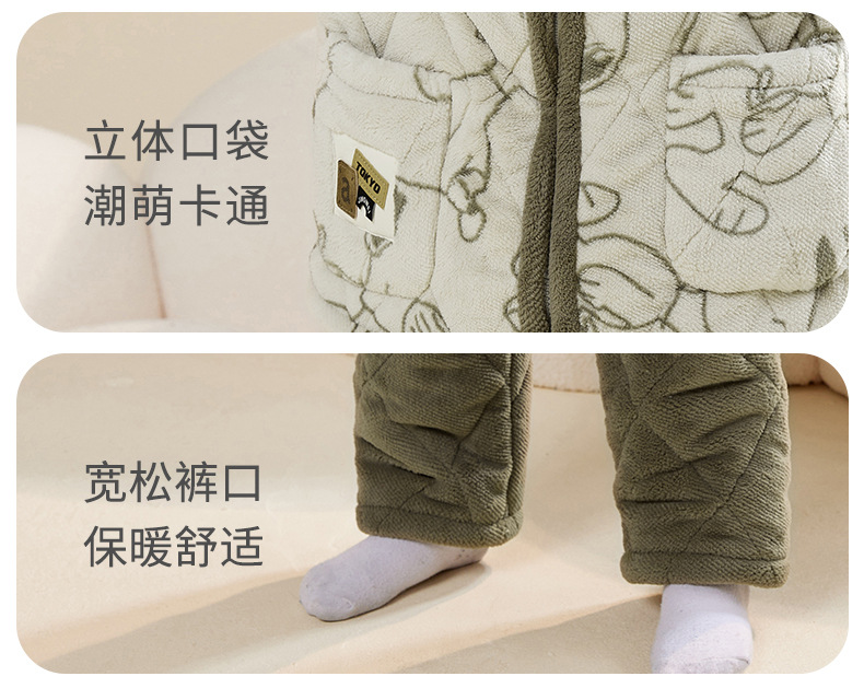 2024 년 어린이 잠옷 소년 겨울 패딩 겨울 소년 산호 양털 3 층면 및 벨벳 세트 도매스토어 가기