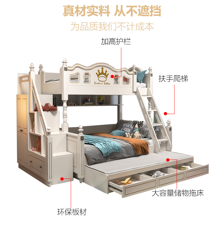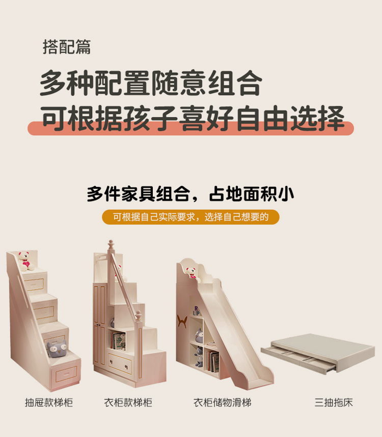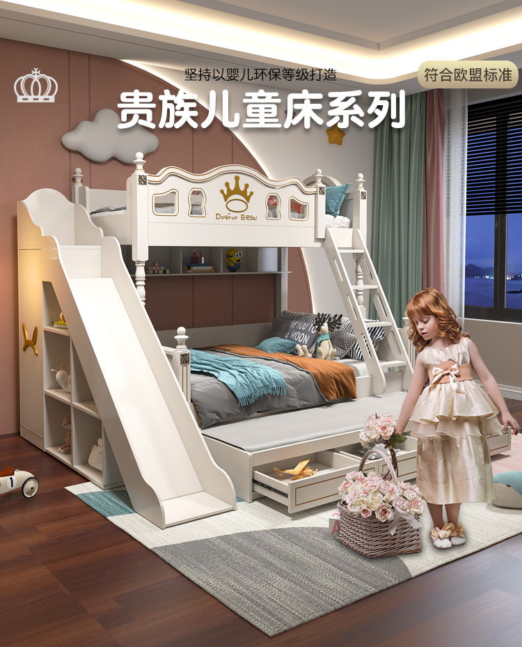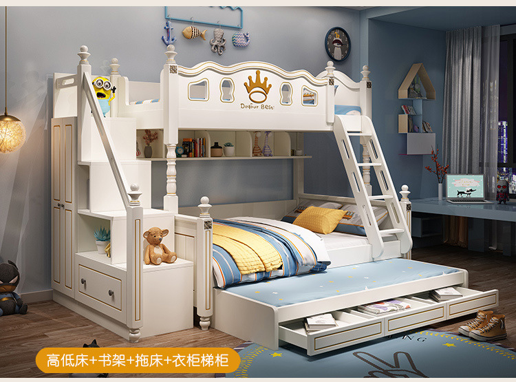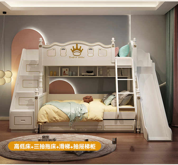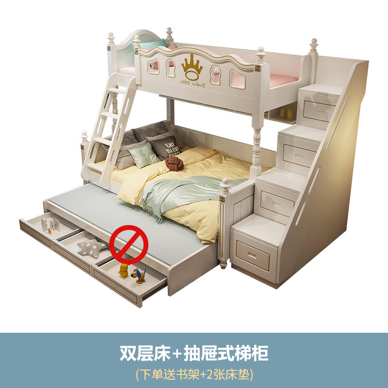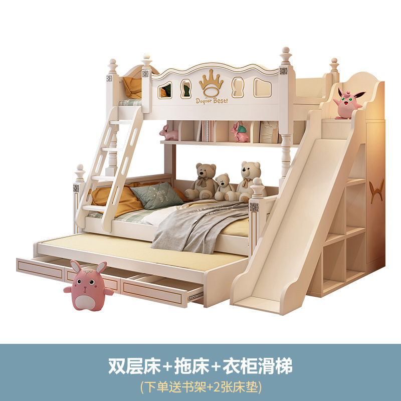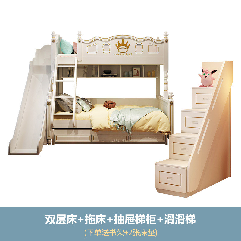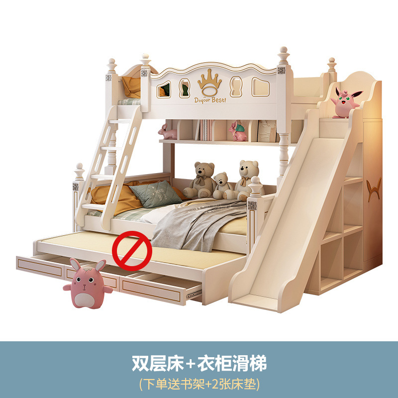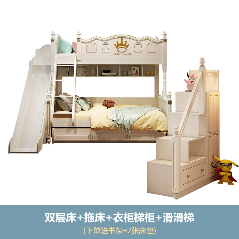 • 이층 침대 + 견인 침대 + 옷장 사다리 캐비닛 + 미끄럼틀, 무료 3E 매트리스 2개