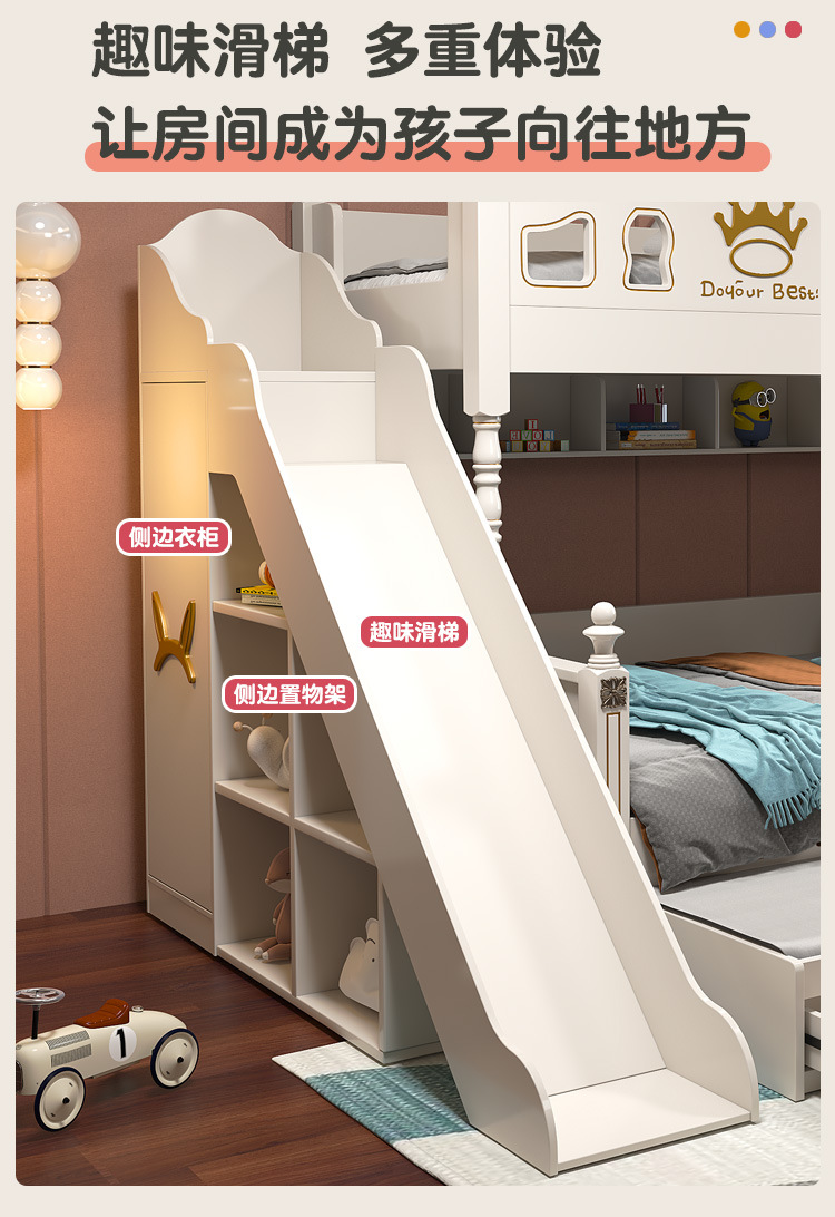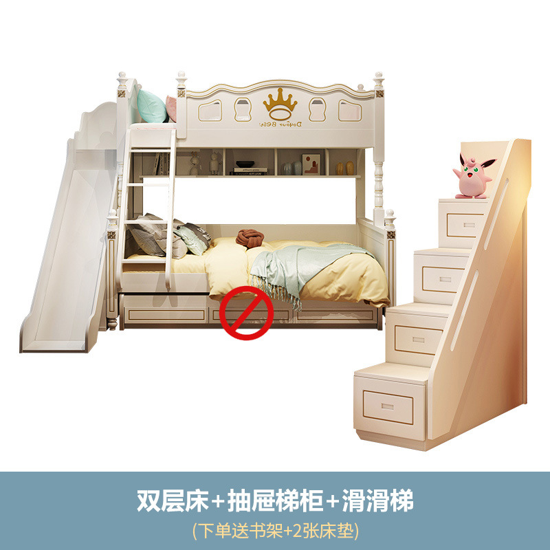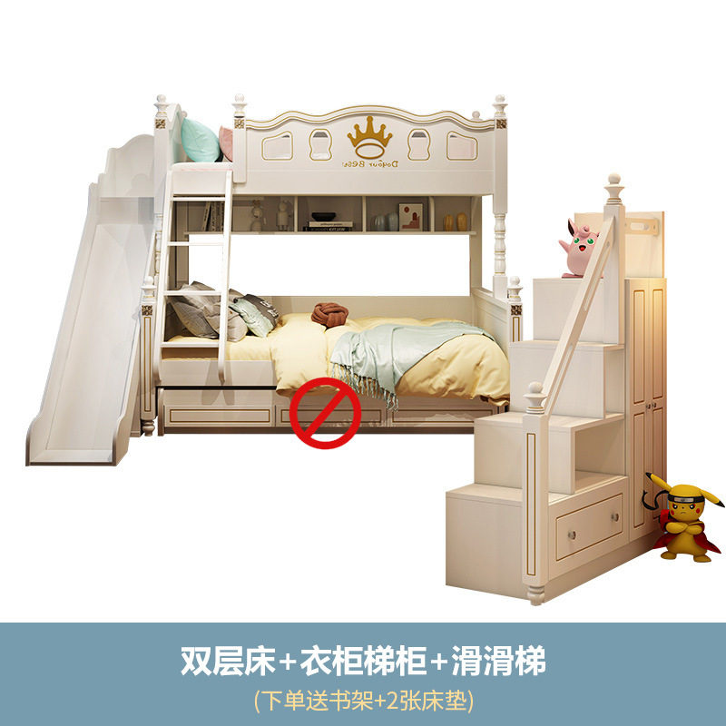 • 이층 침대 + 옷장 사다리 캐비닛 + 미끄럼틀, 무료 3E 매트리스 2개