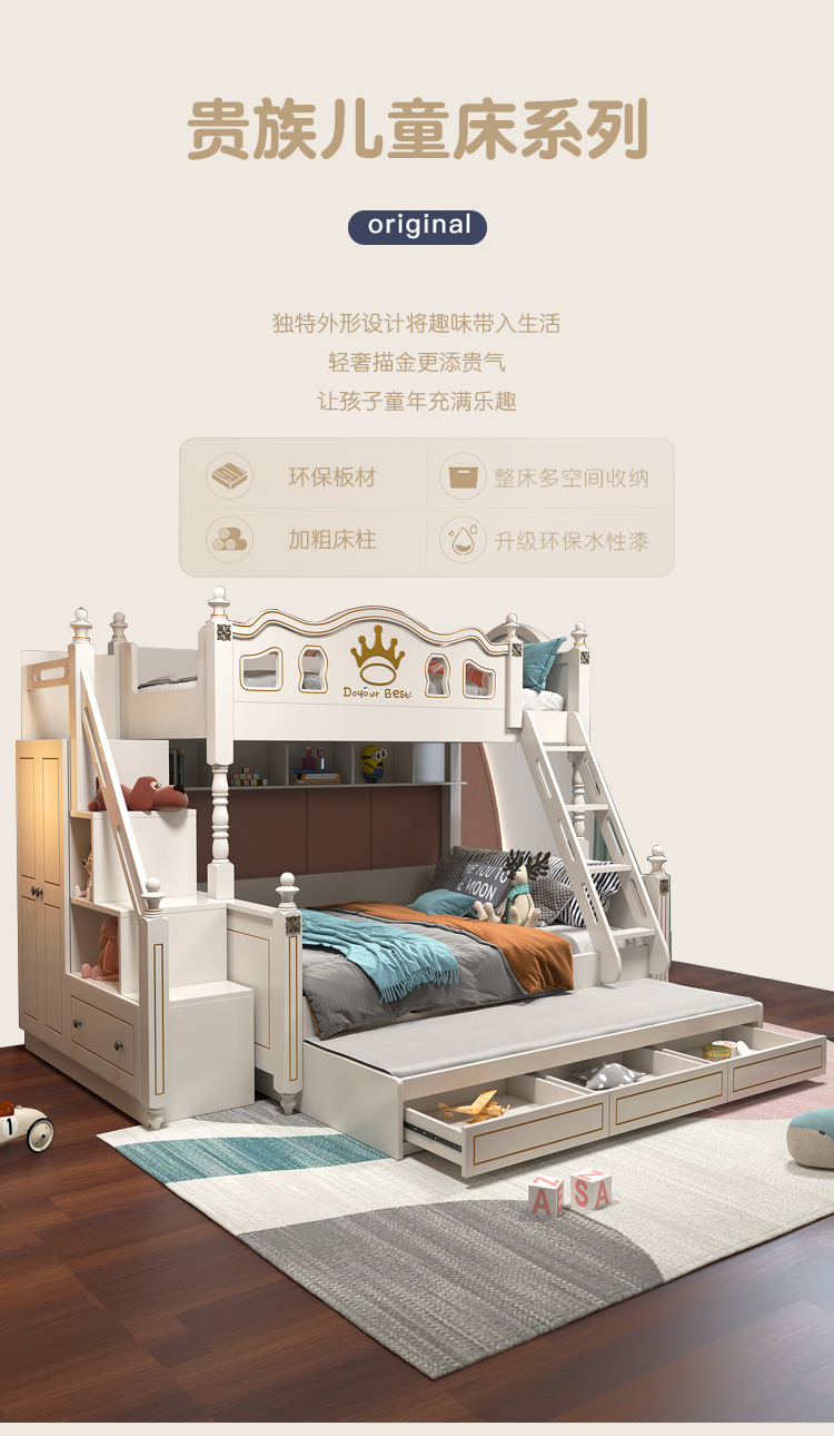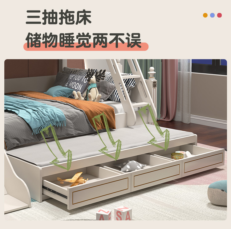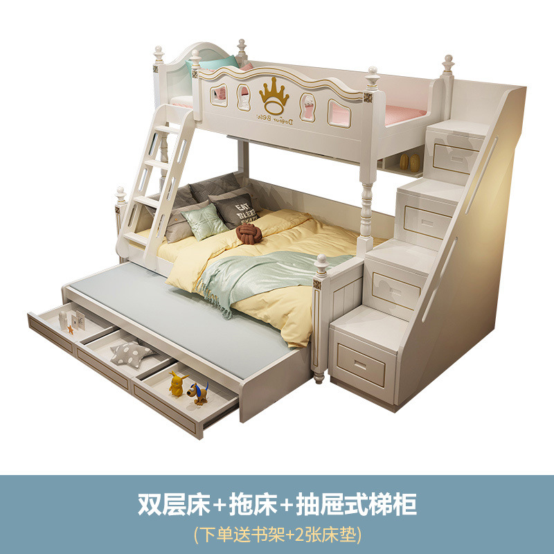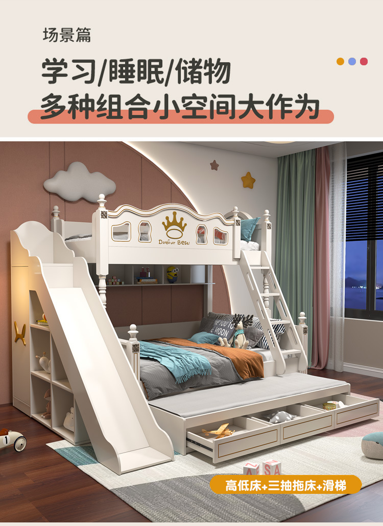• 이층침대 + 견인침대 + 서랍장 + 슬라이드, 무료 3E 매트리스 2개