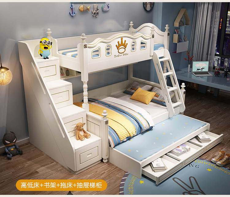 • 이층침대 + 견인침대 + 서랍형 사다리장, 무료 3E 매트리스 2개