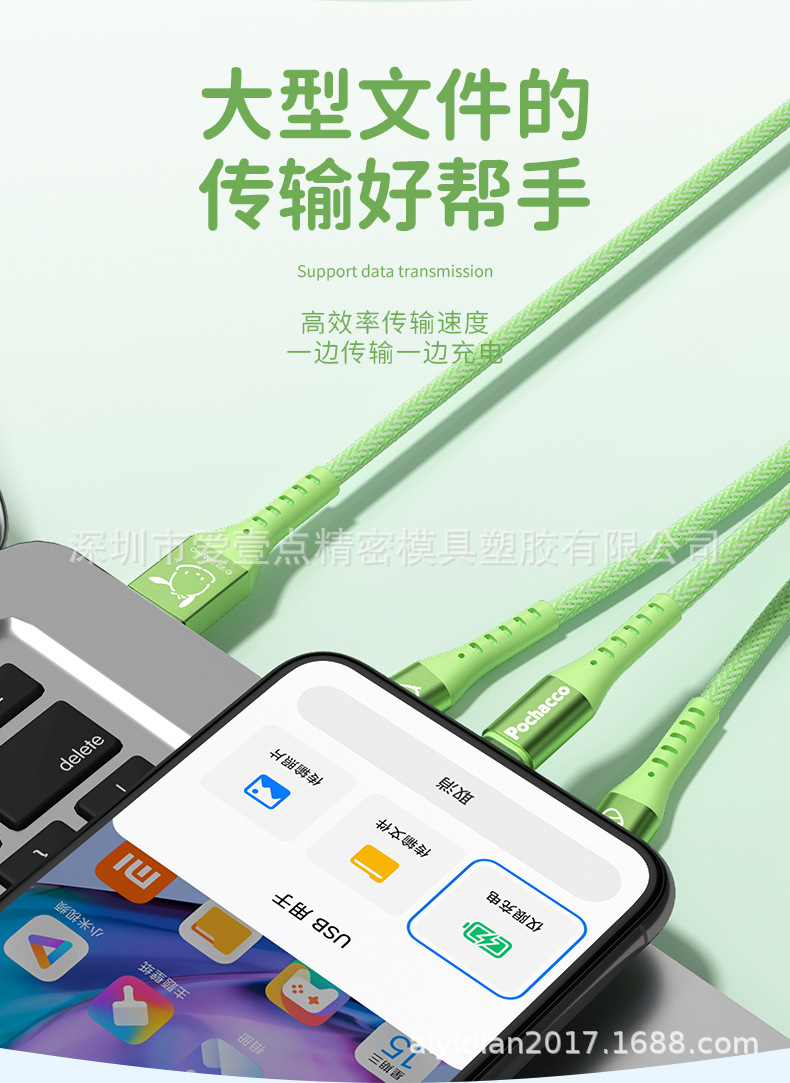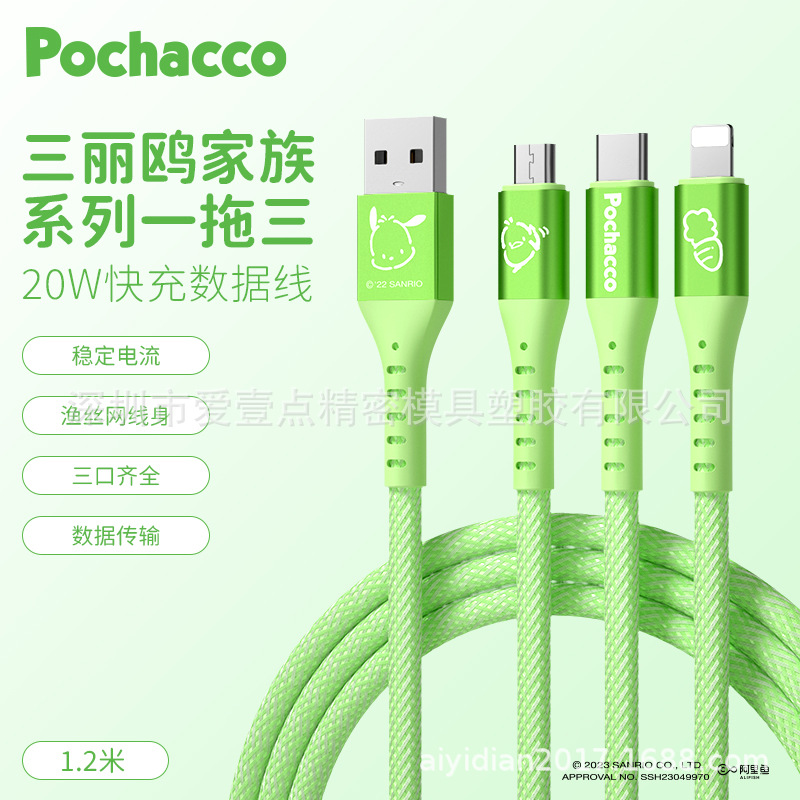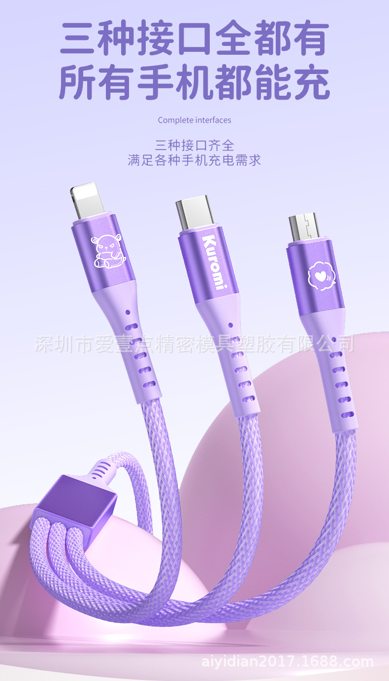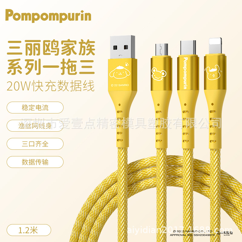 헬로 키티 원 드래그 세 데이터 라인 헬로 키티 빠른 충전 애플 15 시리즈 화웨이 20W 세 머리