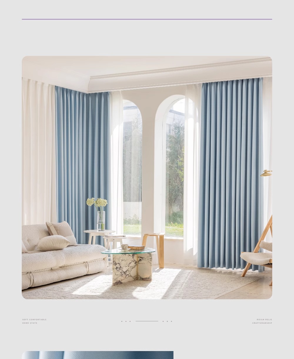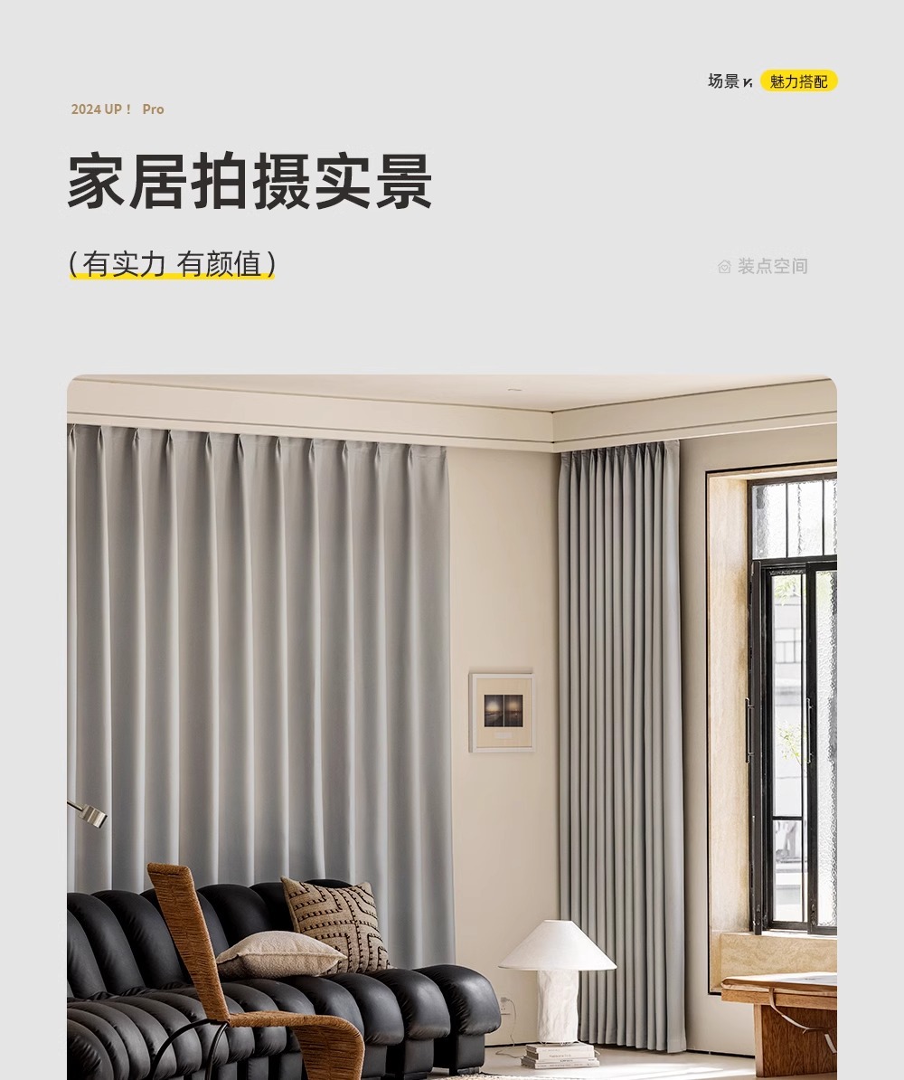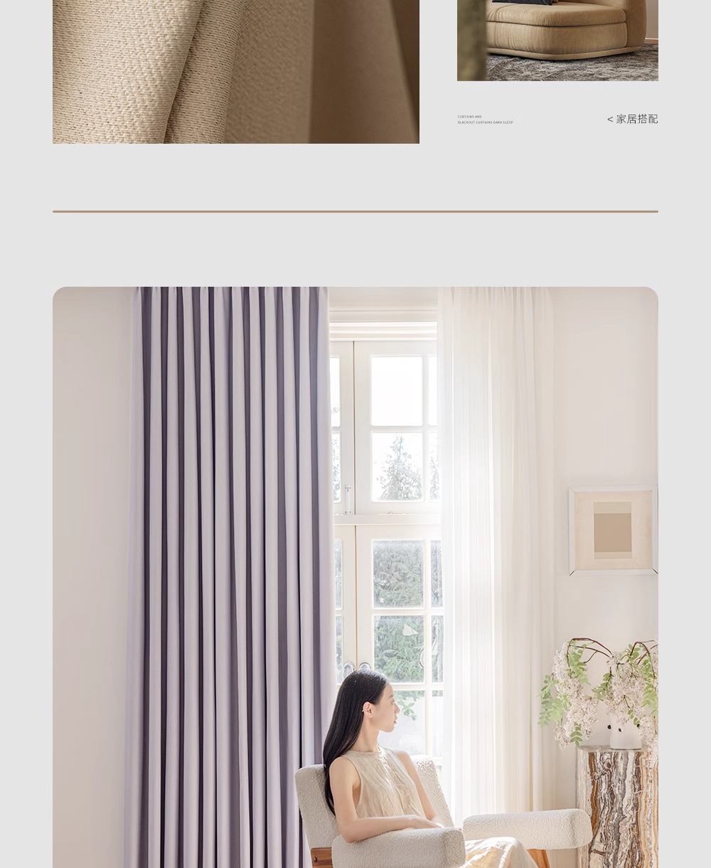 Shaoxing 완성 커튼 빛 차단 침실 거실 발코니 태양 보호 및 단열 양면 린넨 그레이 임대 주택 커튼 도매스토어 가기