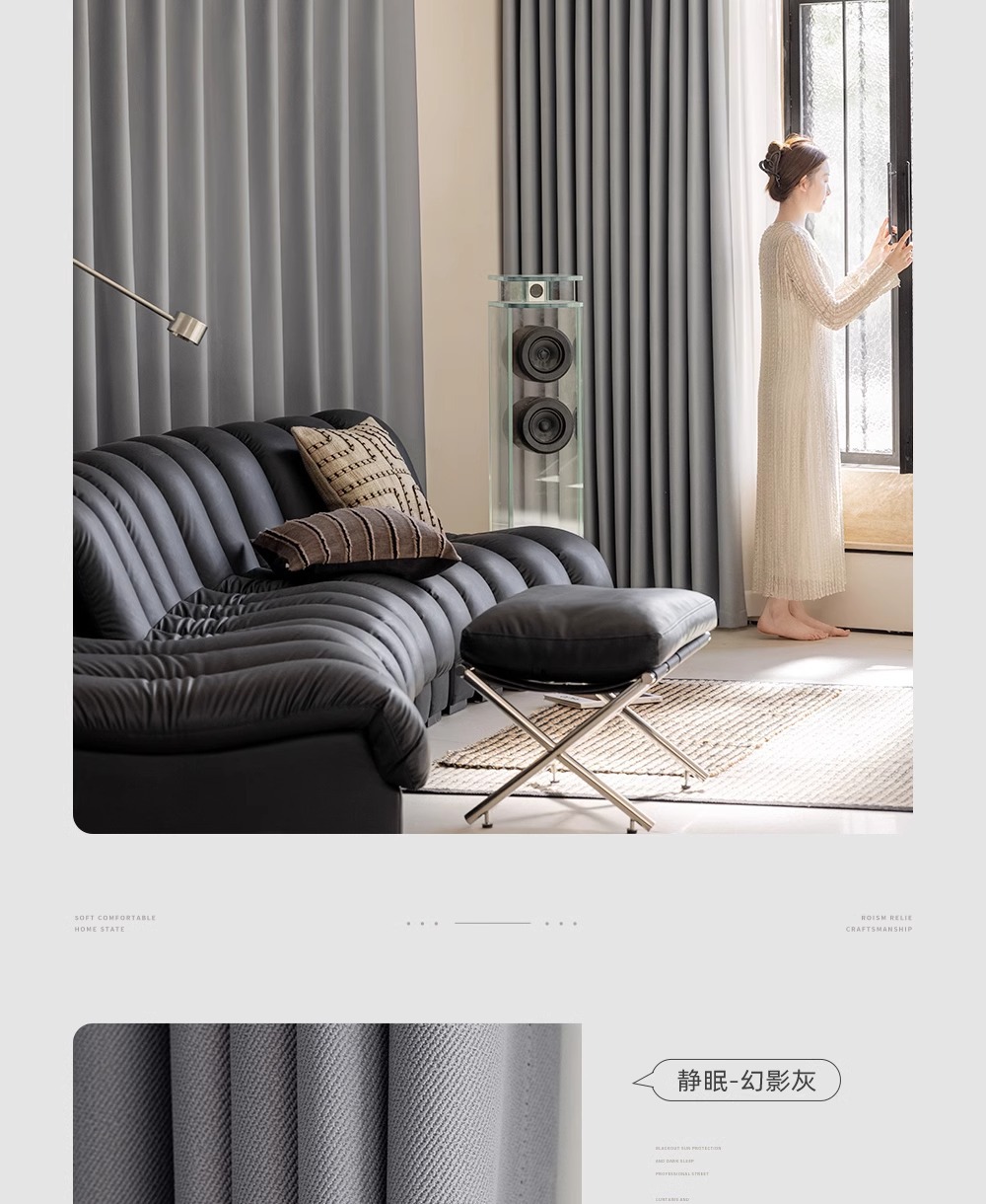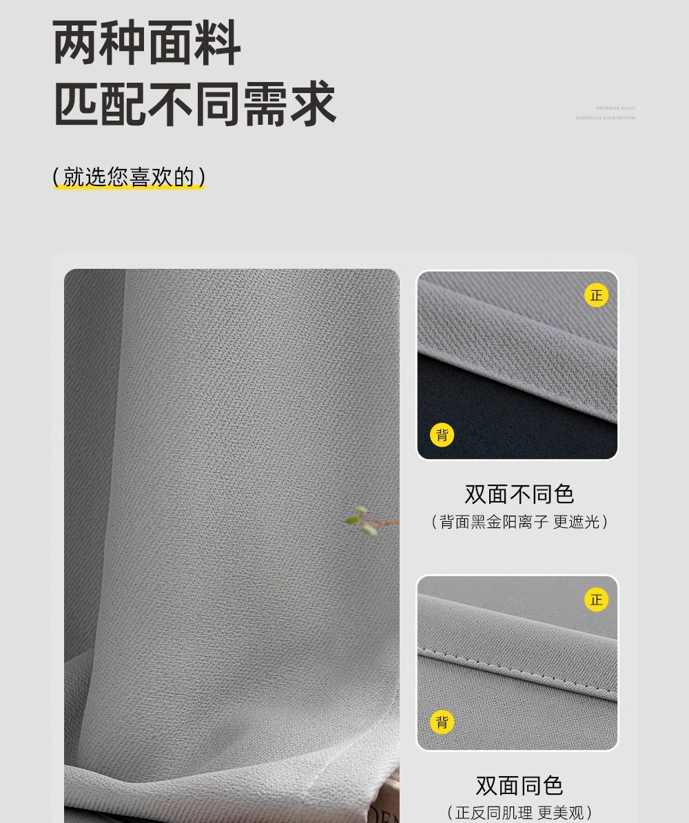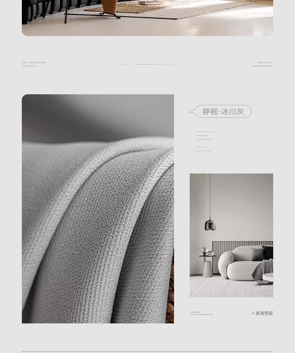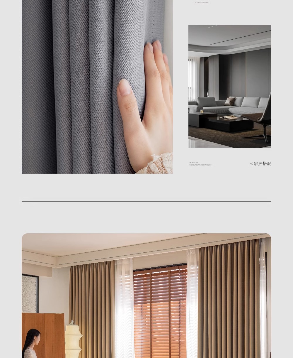 Shaoxing 완성 커튼 빛 차단 침실 거실 발코니 태양 보호 및 단열 양면 린넨 그레이 임대 주택 커튼 도매