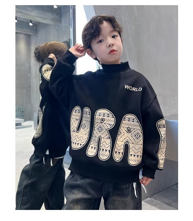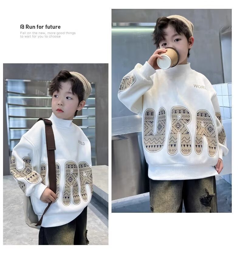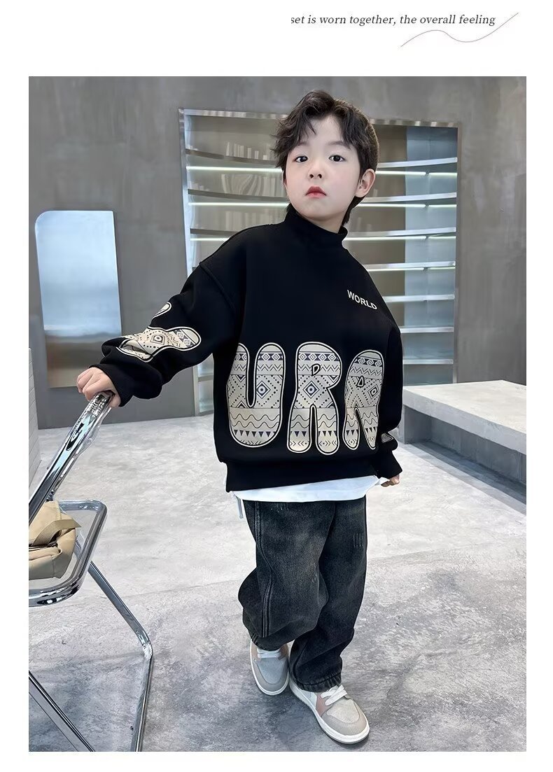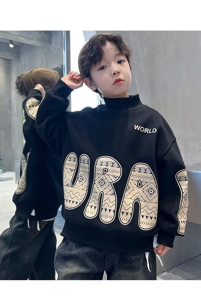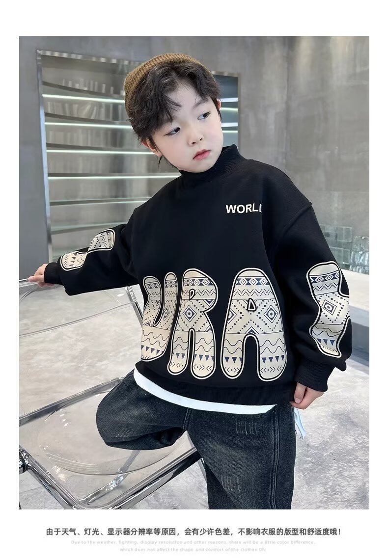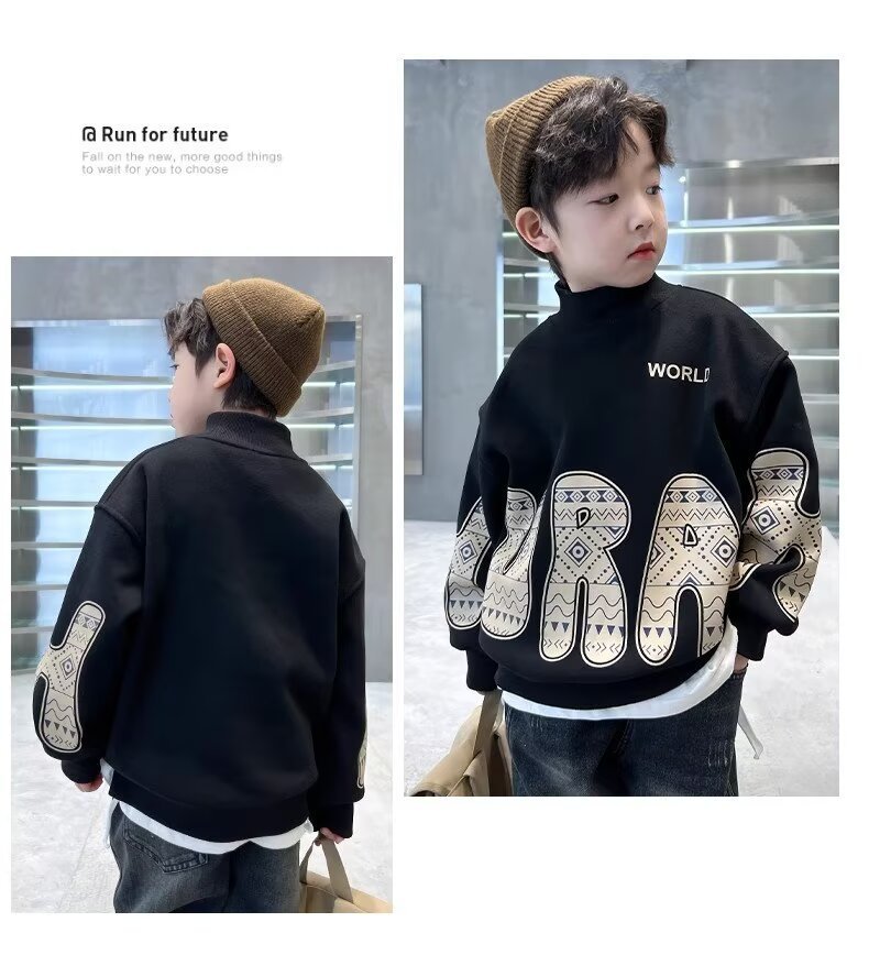 남학생 기모 땀 하프 하이 칼라 가을과 겨울 2024 새로운 대형 어린이 겨울 원피스 벨벳 두꺼운 최고 잘 생긴 트렌디스토어 가기