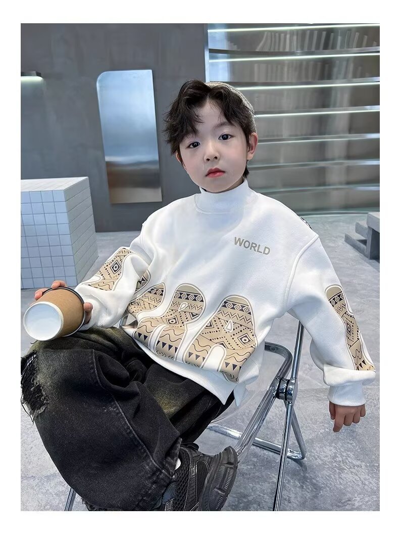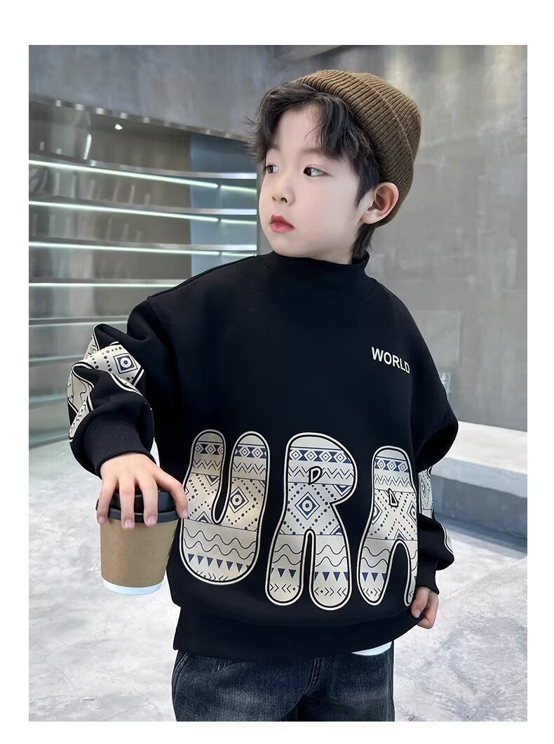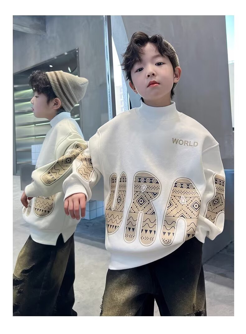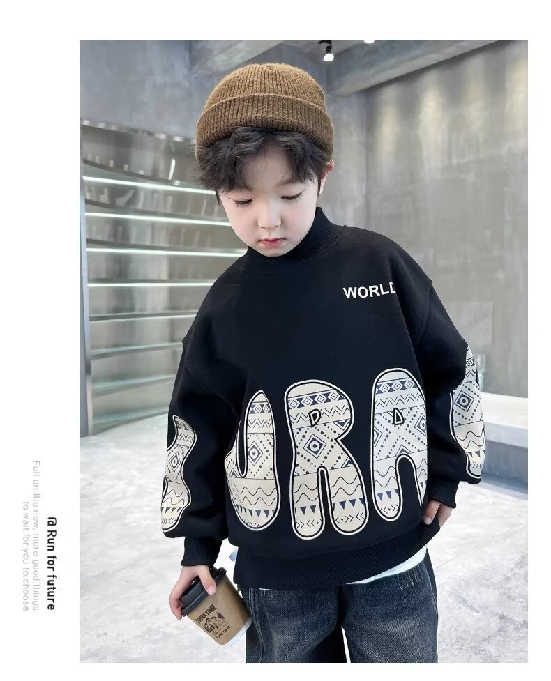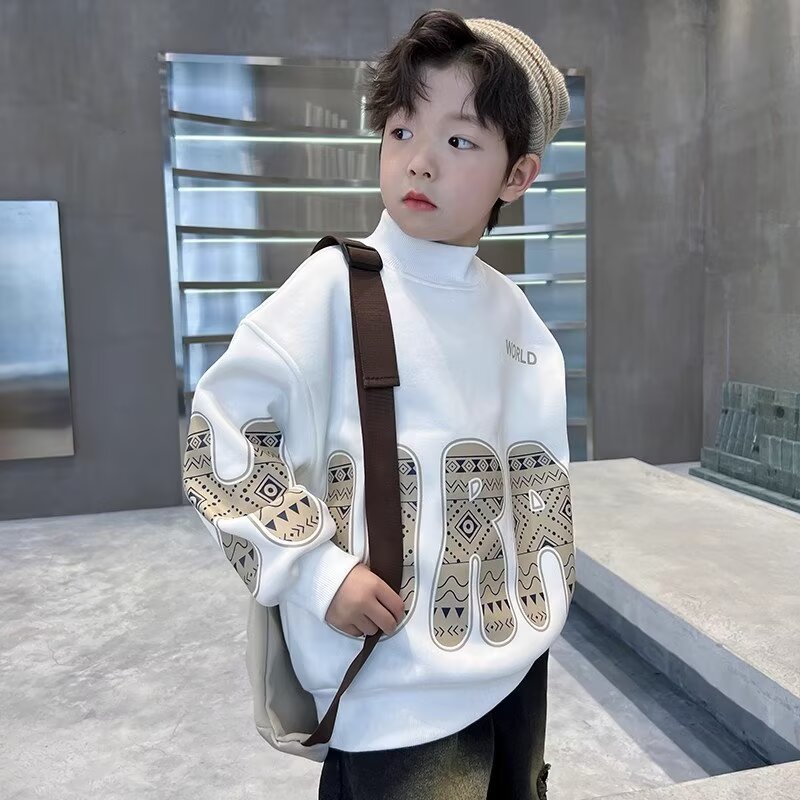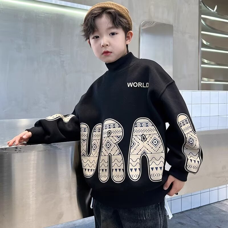 남학생 기모 땀 하프 하이 칼라 가을과 겨울 2024 새로운 대형 어린이 겨울 원피스 벨벳 두꺼운 최고 잘 생긴 트렌디스토어 가기