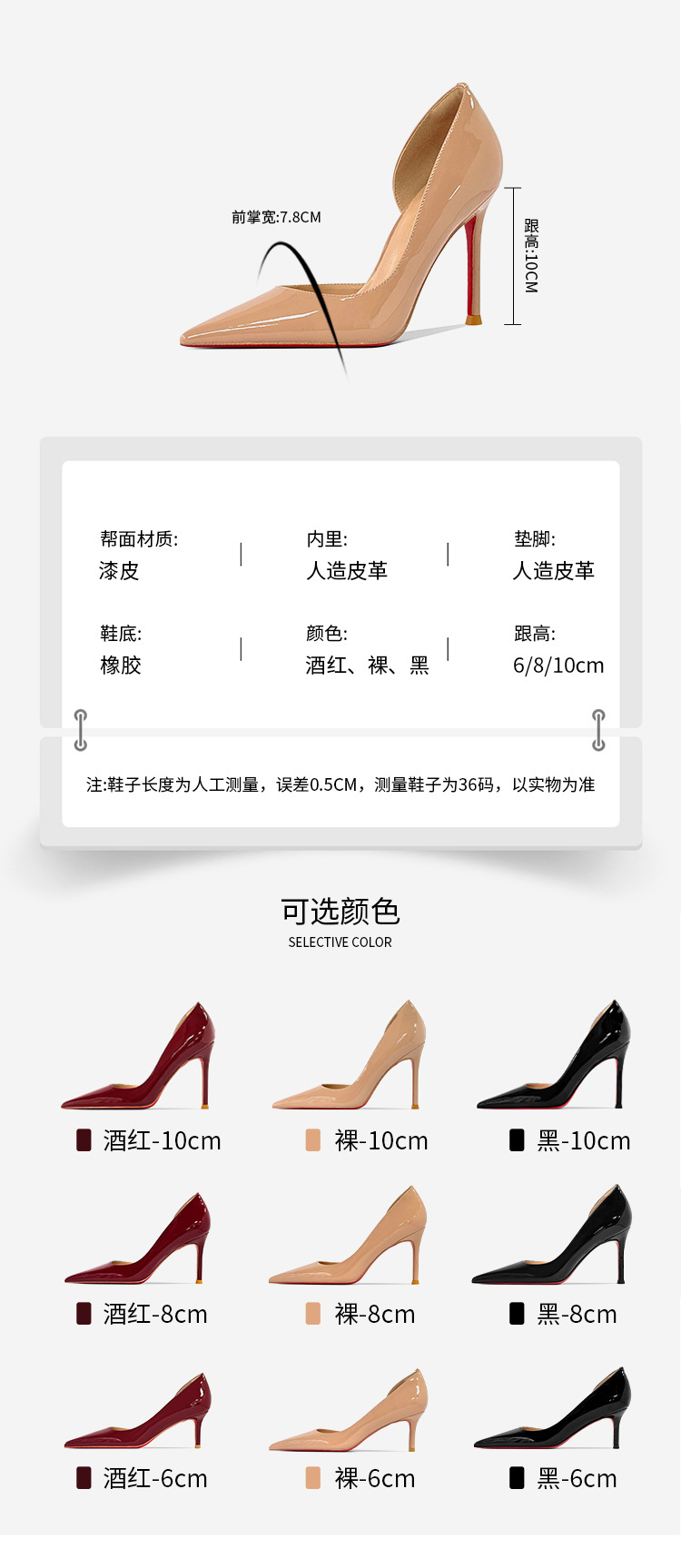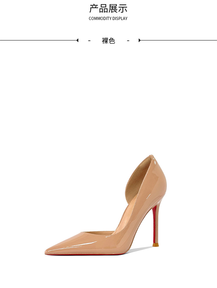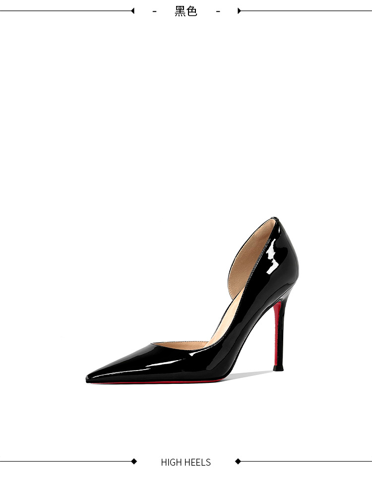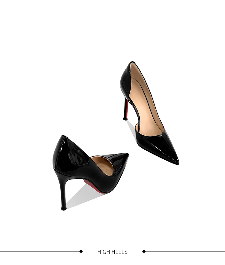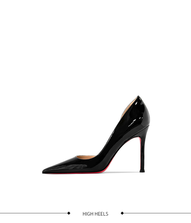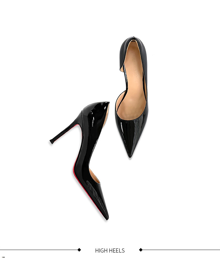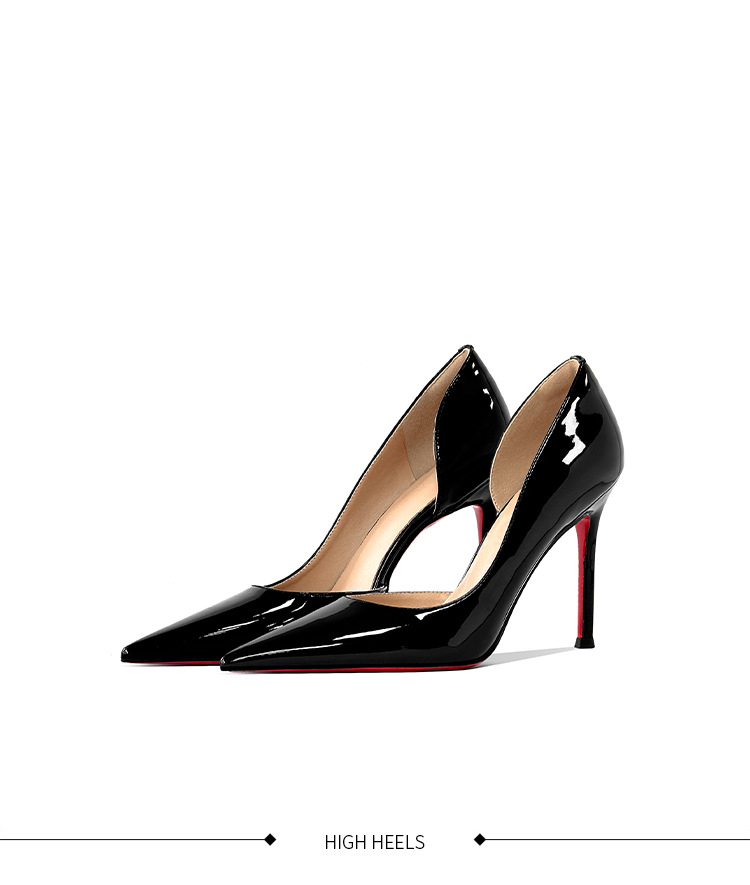 [재고] 여성을 위한 측면 중공 하이힐, 새로운 섹시한 빨간색 밑창 스틸레토 힐, 뾰족한 발가락, 검은색 기질 작업화