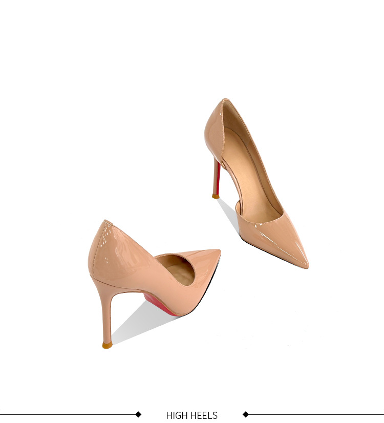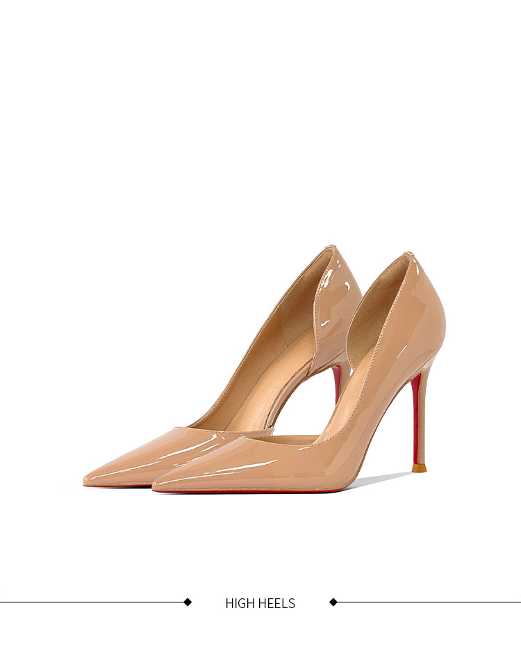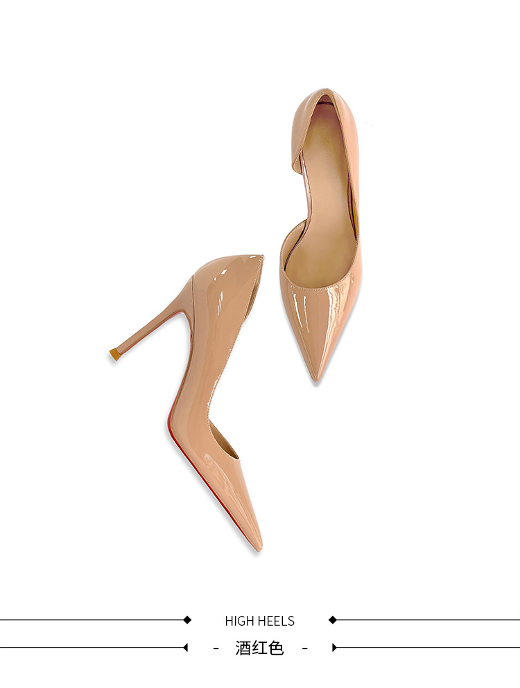 [재고] 여성을 위한 측면 중공 하이힐, 새로운 섹시한 빨간색 밑창 스틸레토 힐, 뾰족한 발가락, 검은색 기질 작업화스토어 가기