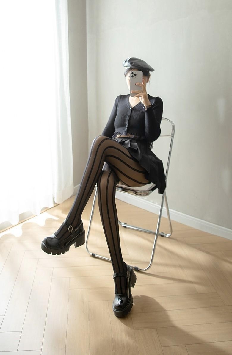 슬리밍 아티팩트 인터넷 연예인 수직 스트라이프 블랙 실크 스타킹 봄과 가을 얇은 섹시한 수박 스트립 블랙 실크베이스 양말스토어 가기