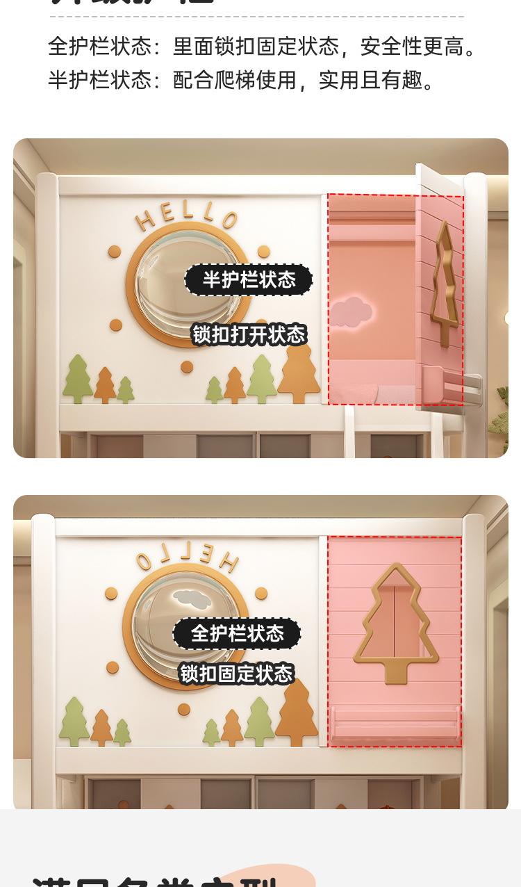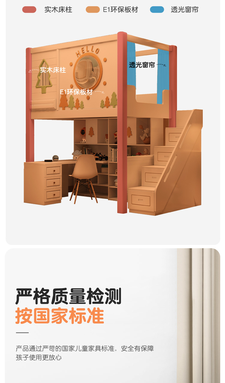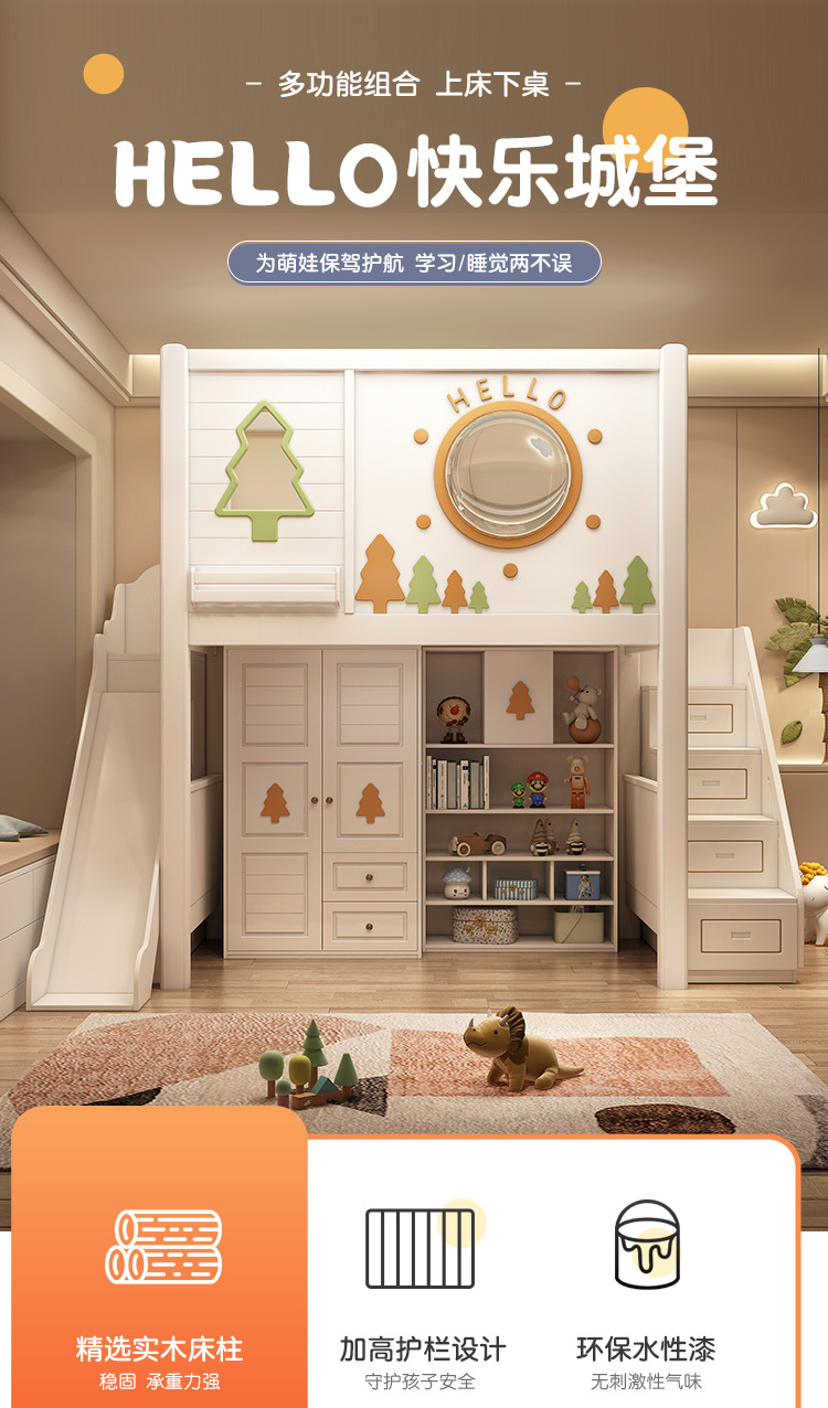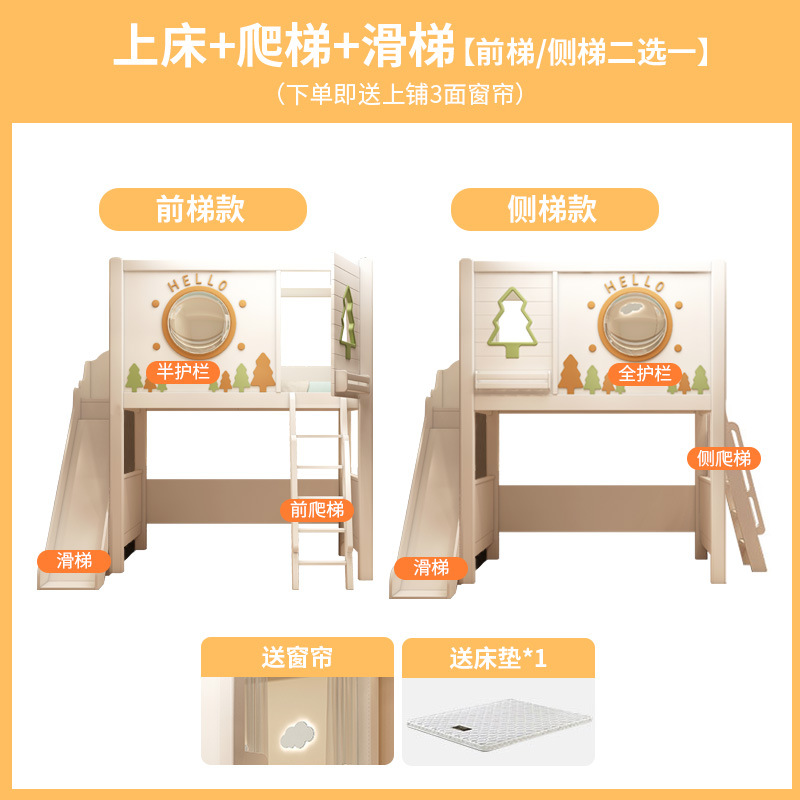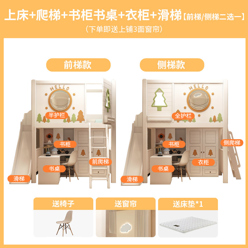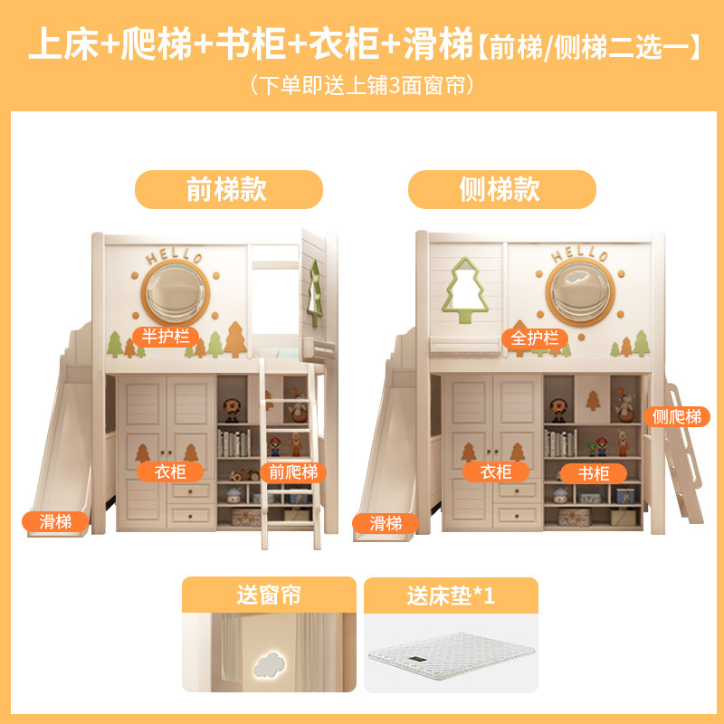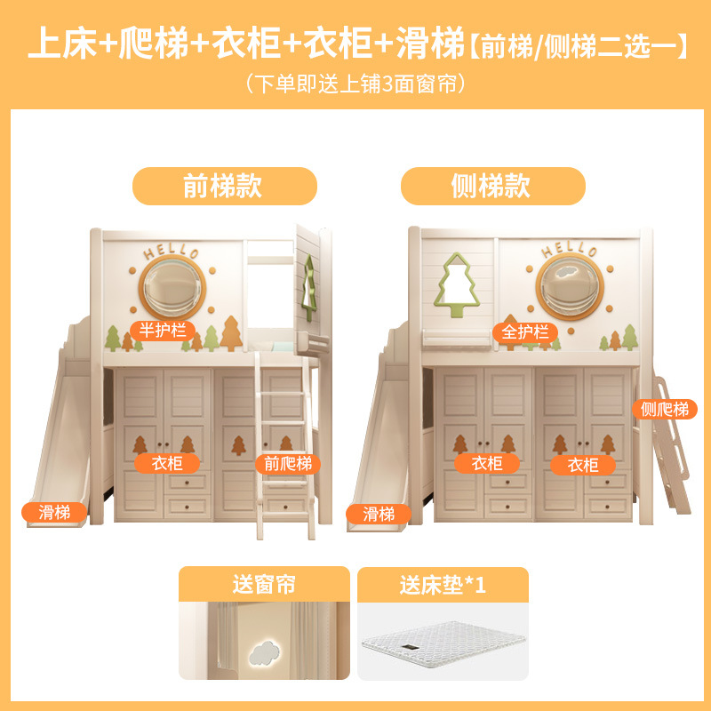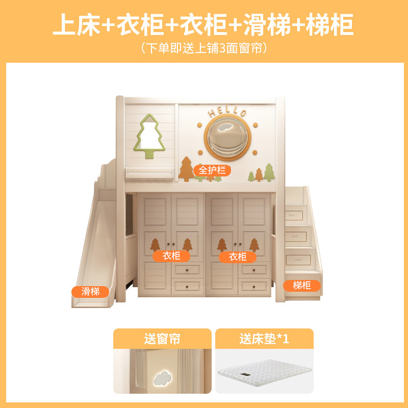 • 조합 23: 상단 침대 + 옷장 + 옷장 + 슬라이드 + 사다리 캐비닛(매트리스 + 상단 커튼 포함)