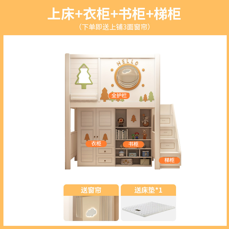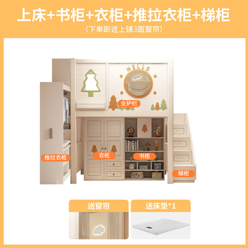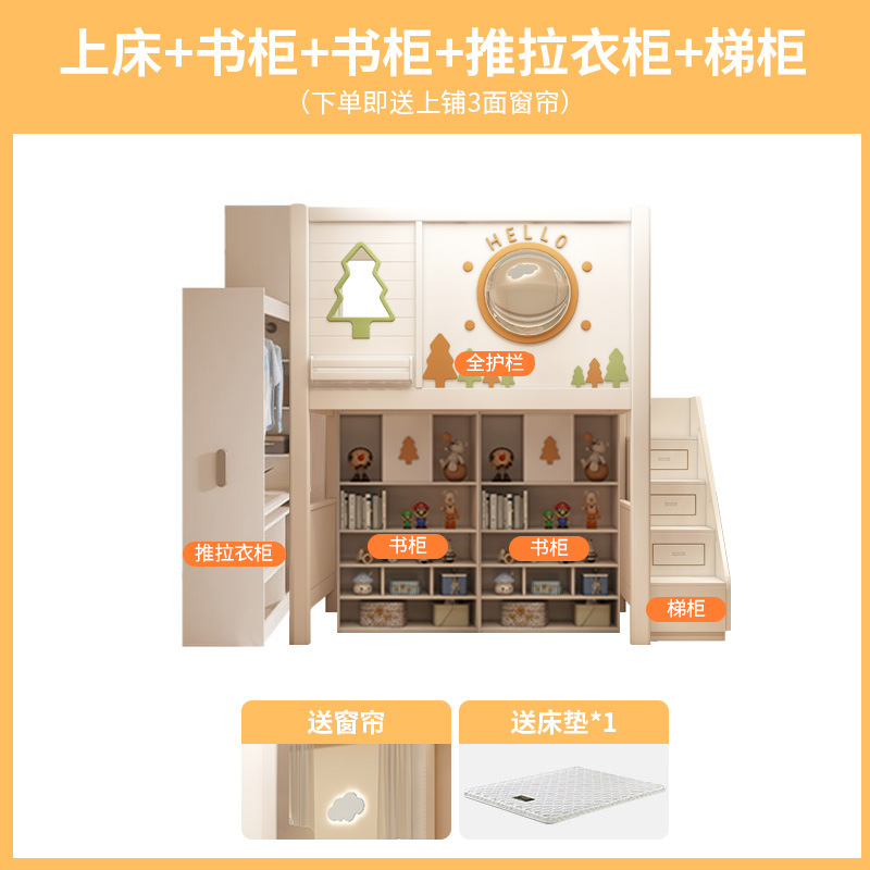 • 조합 28: 상단 침대 + 책장 + 옷장 + 푸시풀 옷장 + 사다리 캐비닛(매트리스 + 상단 커튼 포함)