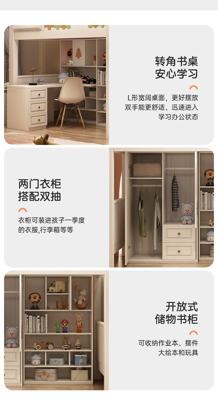 • 조합 13: 상단 침대 + 책장 책상 + 옷장 + 사다리 캐비닛(매트리스 + 상단 커튼 포함)