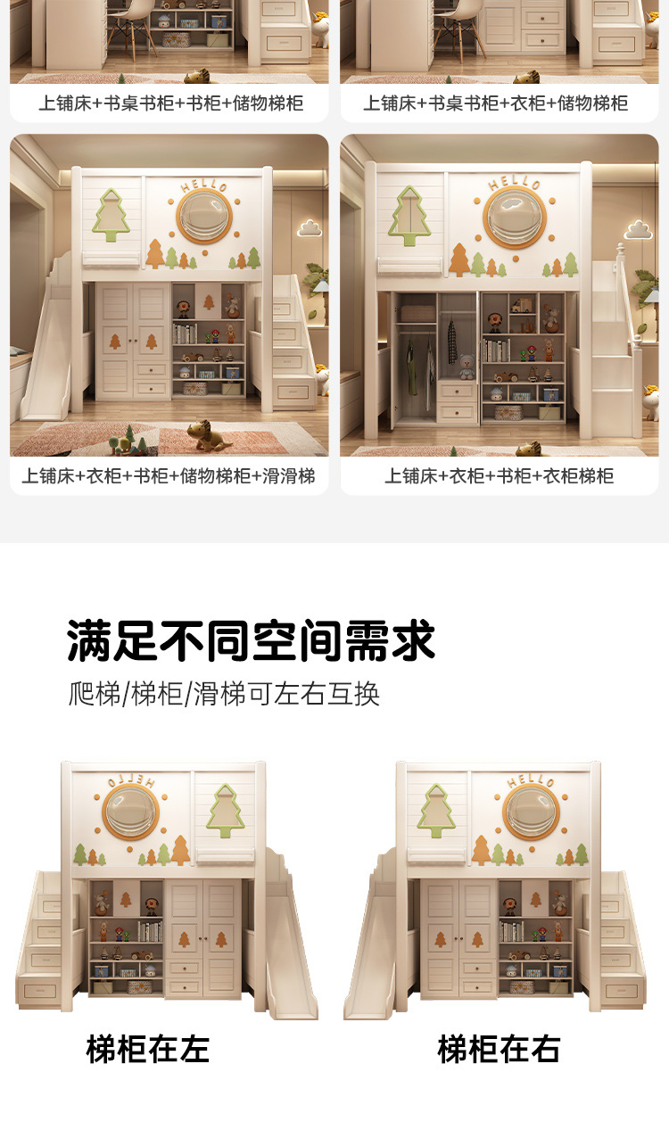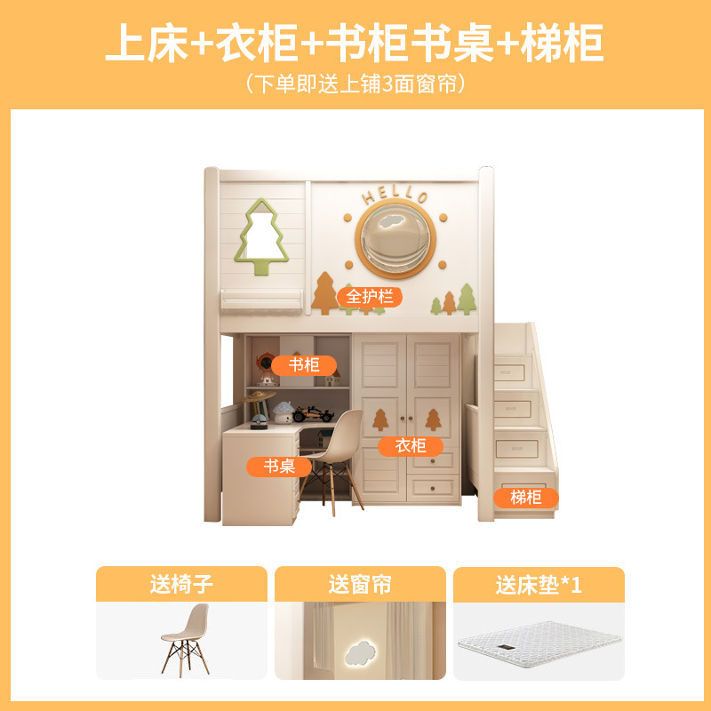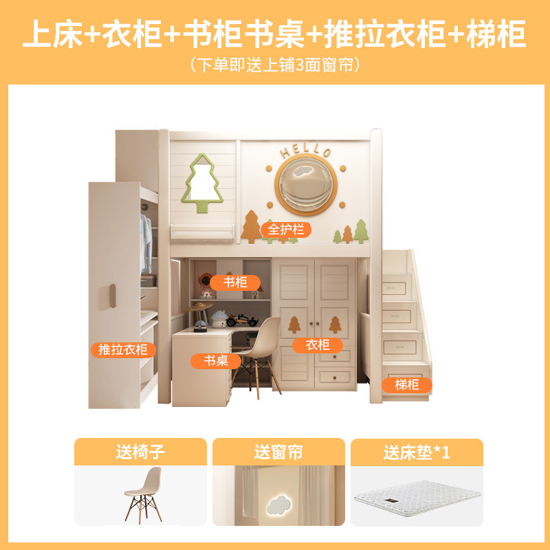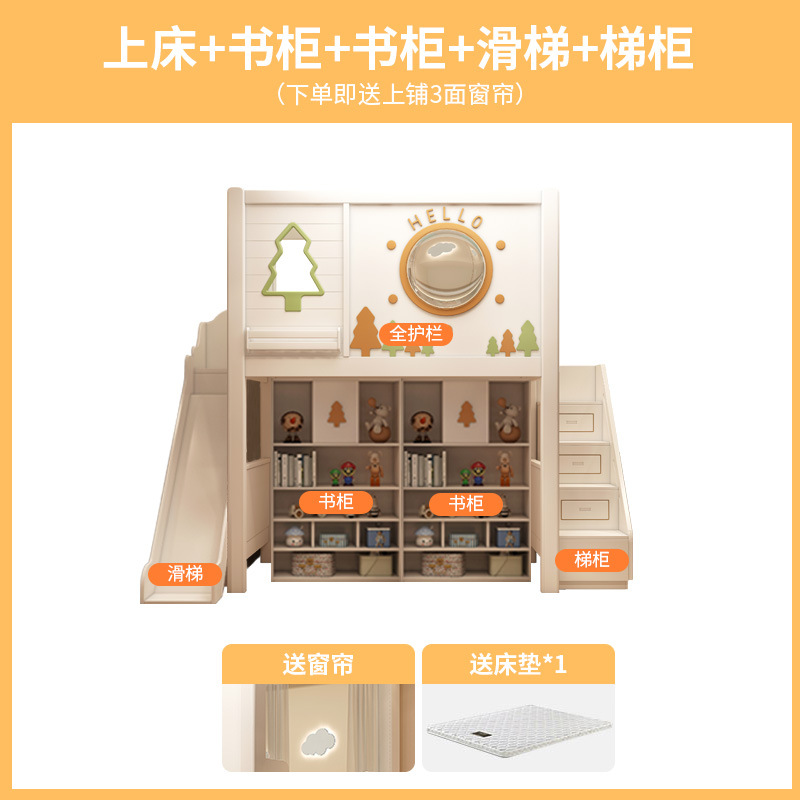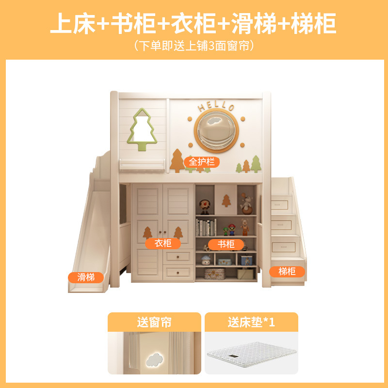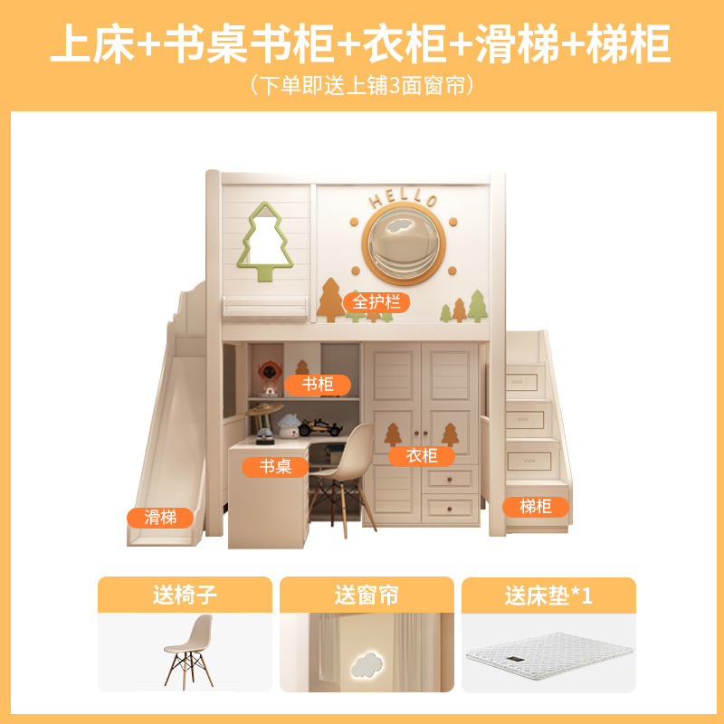 • 조합 25: 상단 침대 + 책장 책상 + 옷장 + 슬라이드 + 사다리 캐비닛(매트리스 + 상단 커튼 포함)