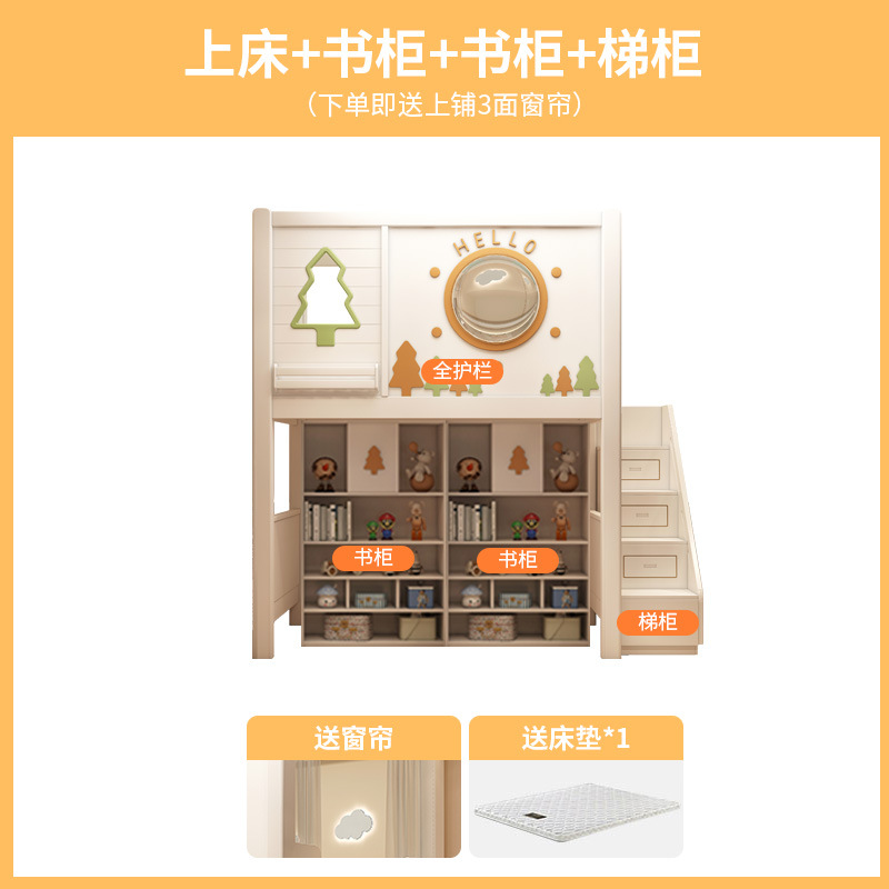 • 조합 10: 상단 침대 + 책장 + 책장 + 사다리 캐비닛(매트리스 + 상단 커튼 포함)
