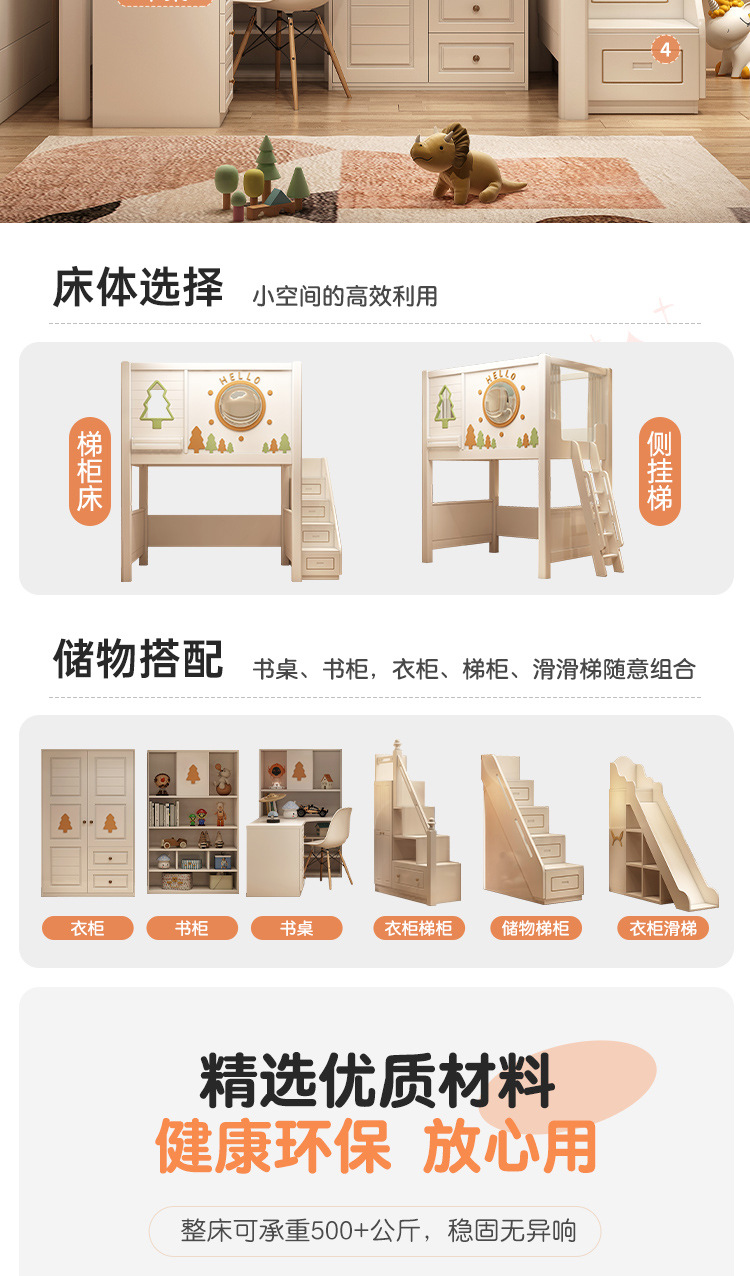 • 조합 4: 상단 침대 + 사다리 캐비닛(매트리스 + 상단 커튼 포함)
