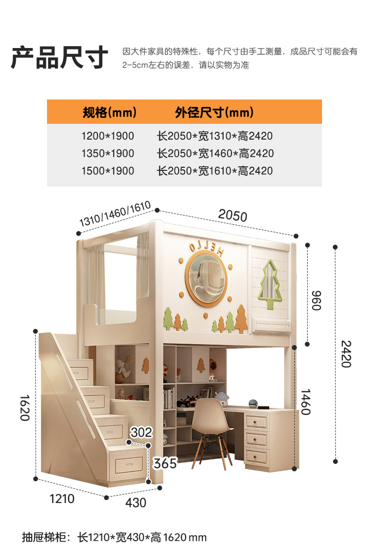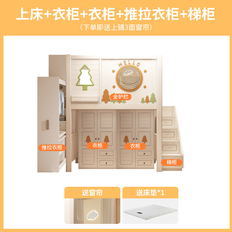 • 조합 5: 상단 침대 + 옷장 사다리 캐비닛(매트리스 + 상단 커튼 포함)