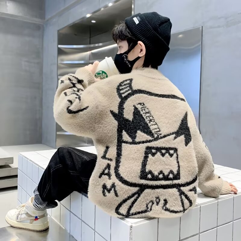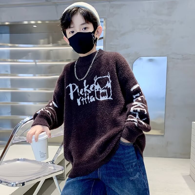 어린이 스웨터 소년의 가을과 겨울 2024 새로운 스타일 어린 소년의 가을 옷 두꺼운 어린이 스웨터 겨울