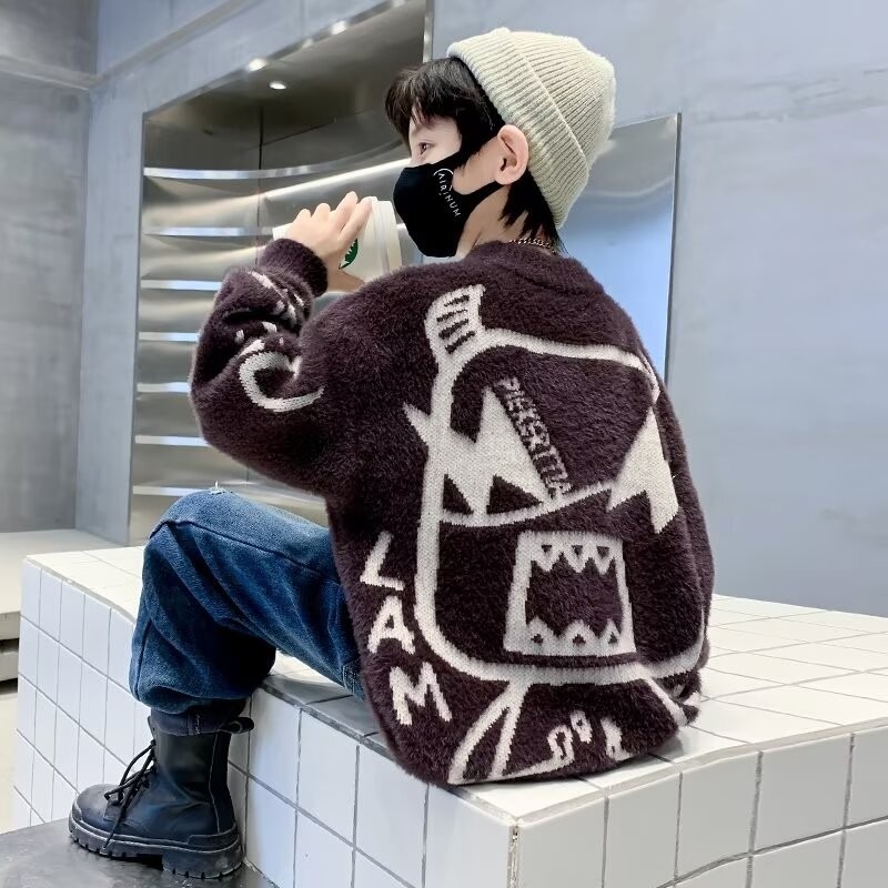 어린이 스웨터 소년의 가을과 겨울 2024 새로운 스타일 어린 소년의 가을 옷 두꺼운 어린이 스웨터 겨울스토어 가기