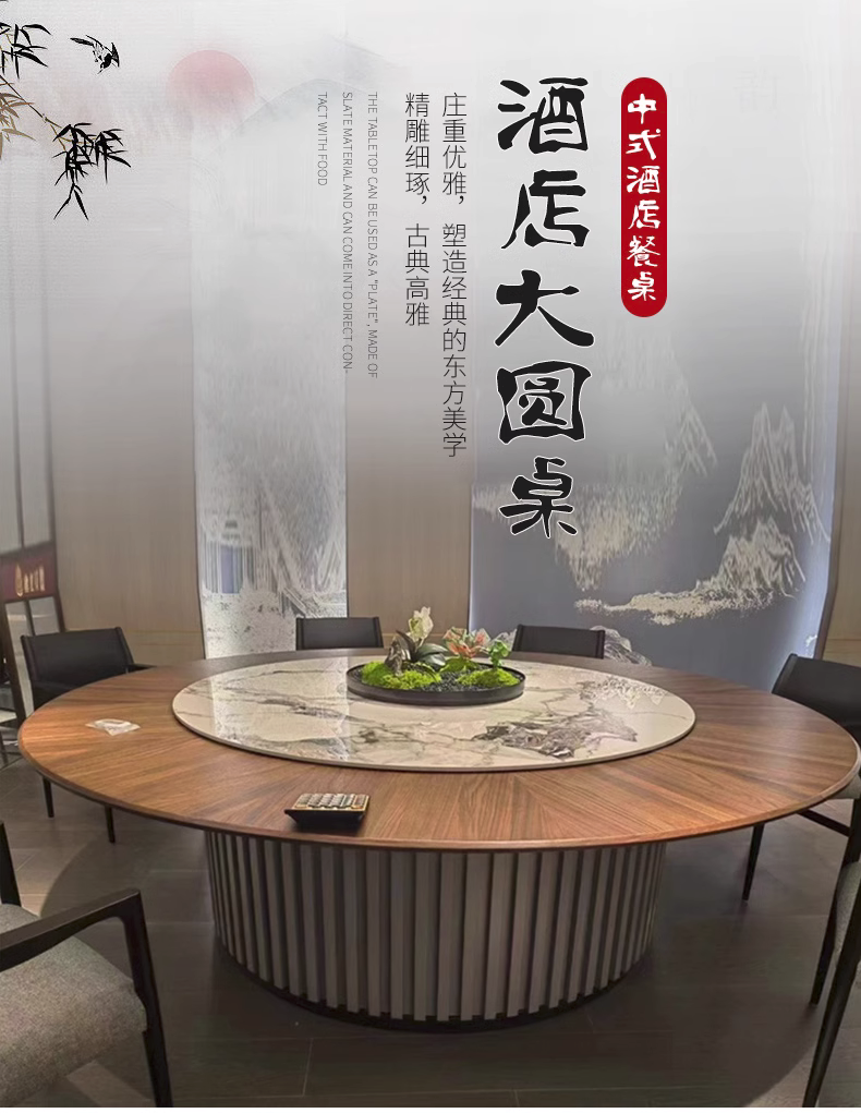 호텔 전기 식탁 큰 원형 테이블 15 명 20 명 호텔 레스토랑 발코니 바위 판 대리석 턴테이블 자동 2 미터 3스토어 가기