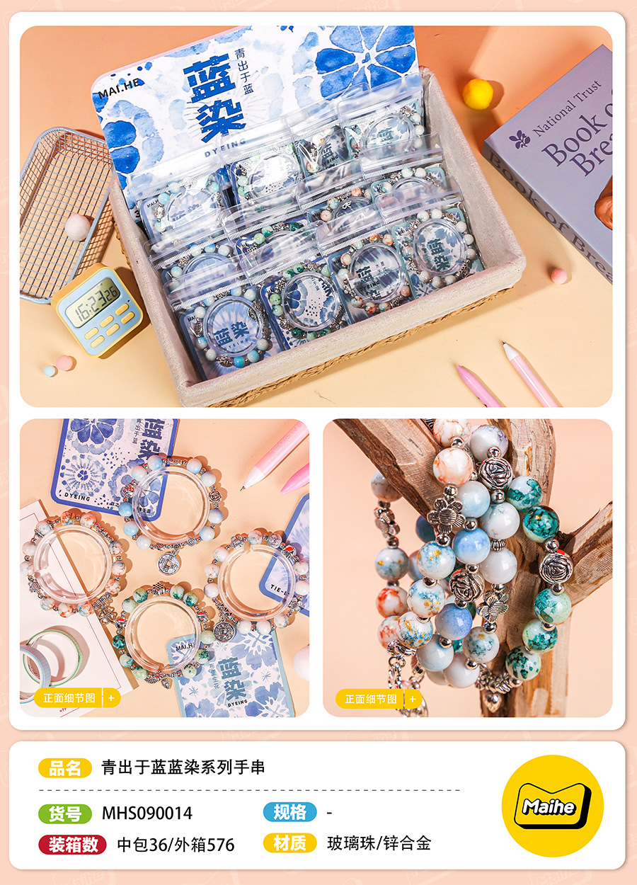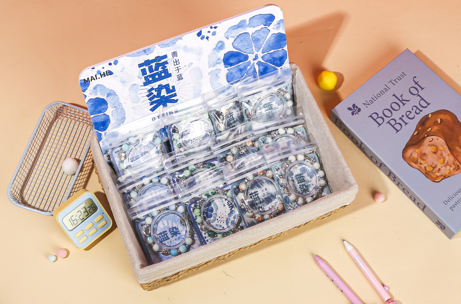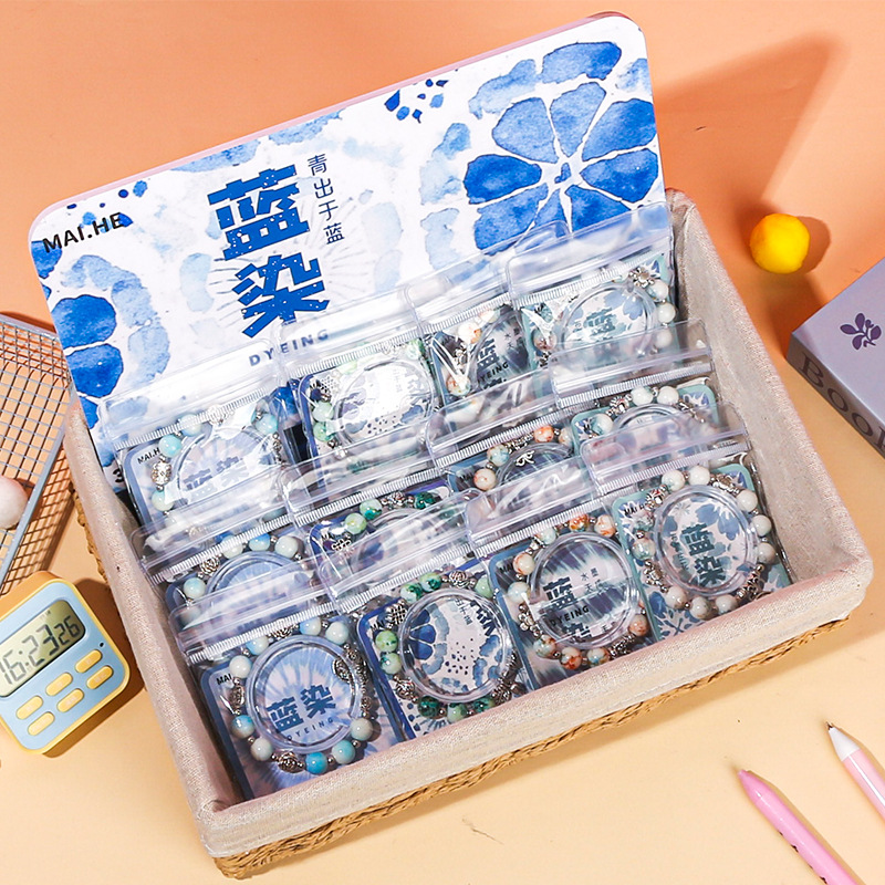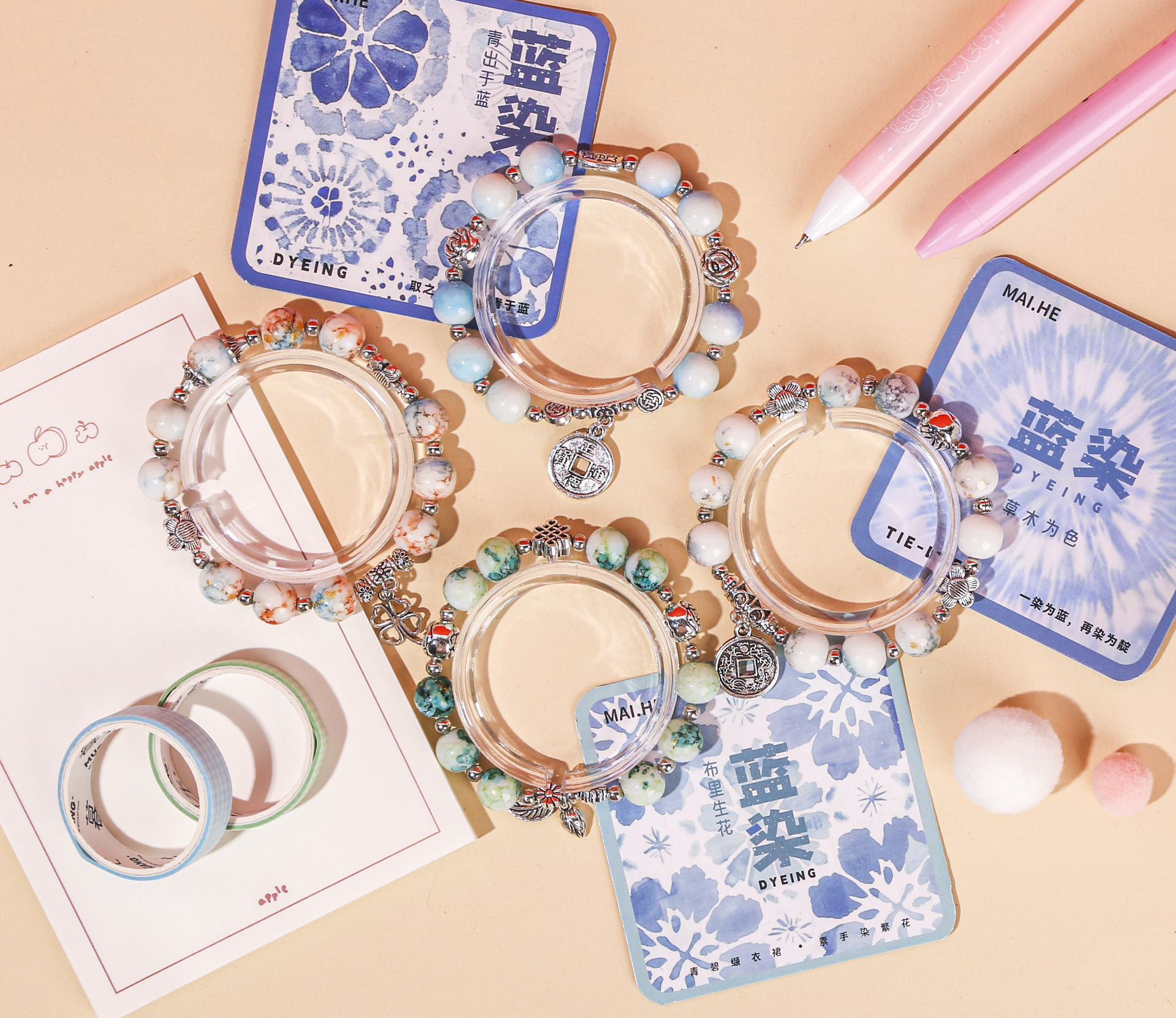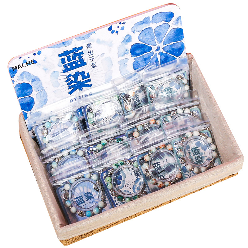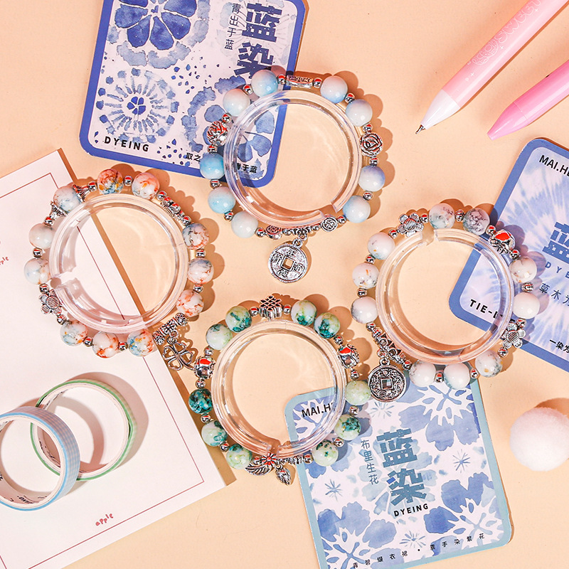 새로운 블루 염색 시리즈 팔찌 복고풍 창조적 인 학생 유리 구슬 팔찌 중국 스타일의 원래 디자인스토어 가기
