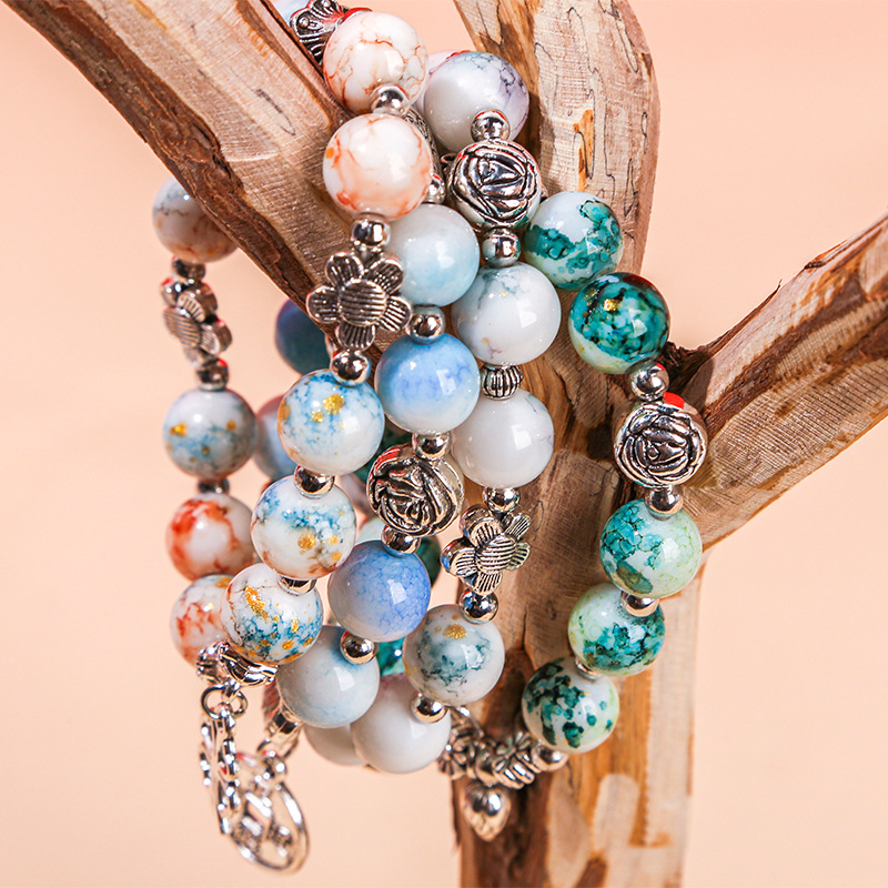 새로운 블루 염색 시리즈 팔찌 복고풍 창조적 인 학생 유리 구슬 팔찌 중국 스타일의 원래 디자인