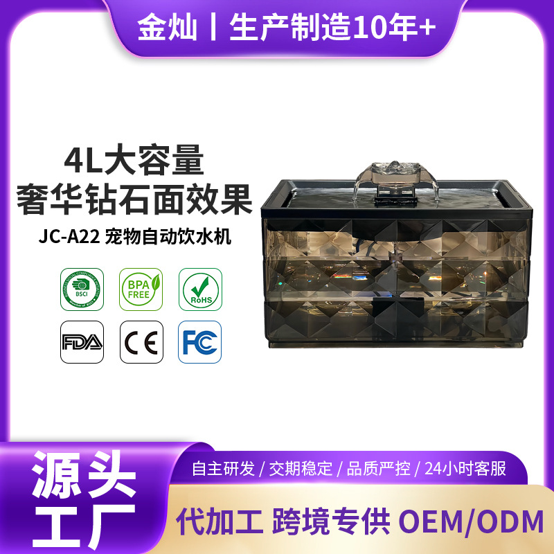 뜨거운 판매 애완 동물 워터 디스펜서 4L 용량 다이아몬드 표면 빛으로 황금 애완 동물 용품 공장은 가공을 대신 할 수 있습니다스토어 가기