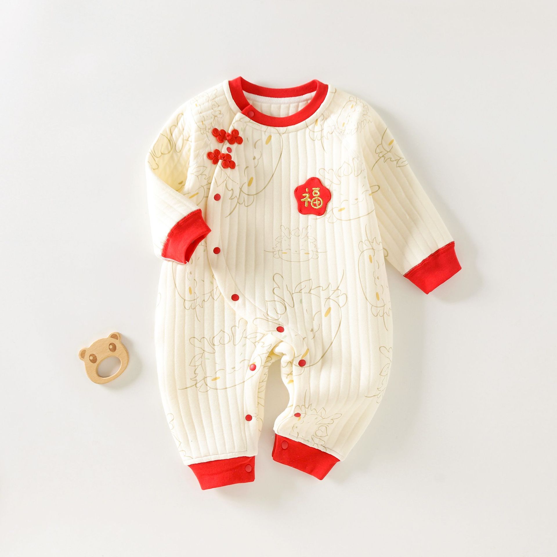 아기 점프 수트 봄과 가을 따뜻한 긴 소매 드래곤 년 아기 옷 가까운 가을과 겨울 새로운 3-18 개월 면화스토어 가기
