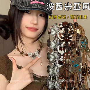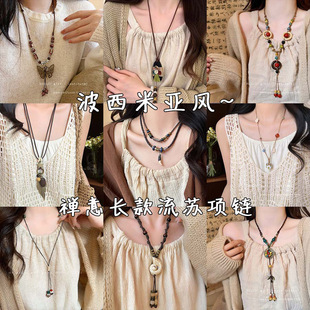 新中式新疆旅游古铜项链轻奢小众波西米亚民族度假风毛衣链配饰品
