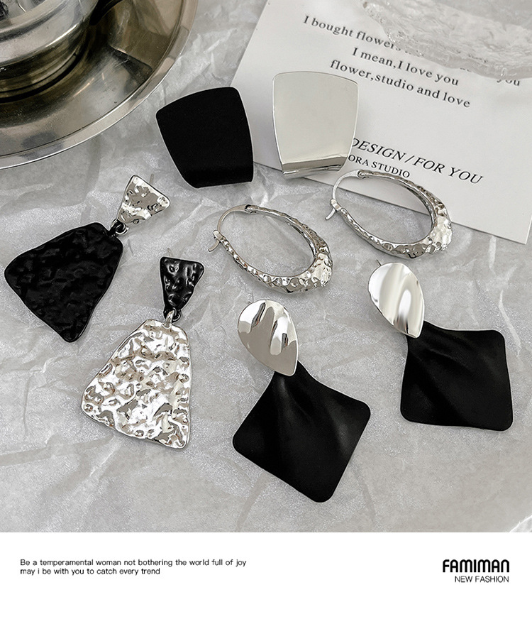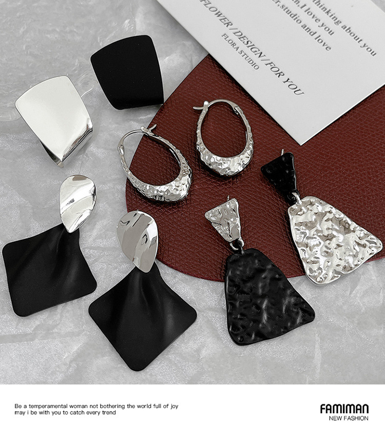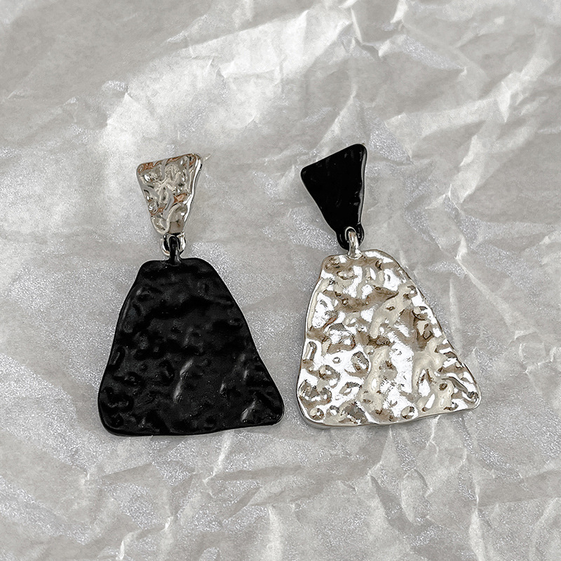 • 맞춤형 실버 및 블랙 비대칭 스터드 귀걸이
