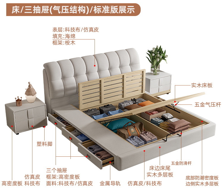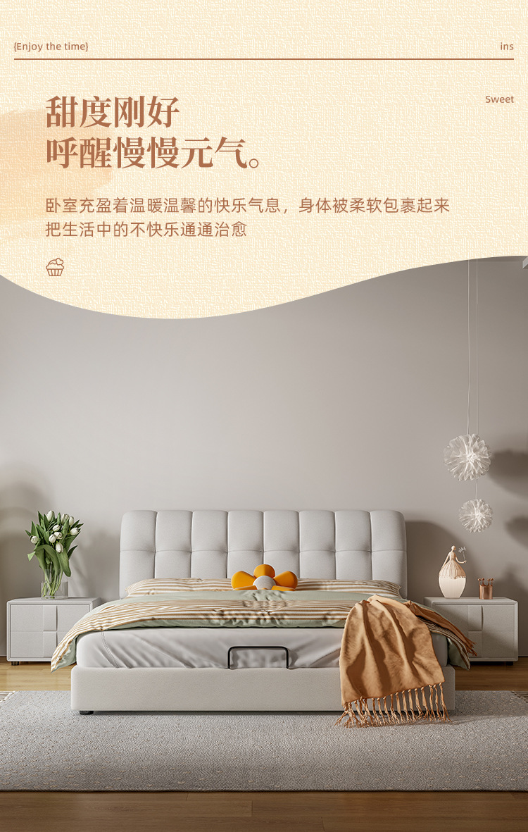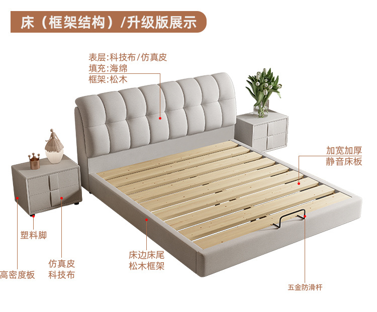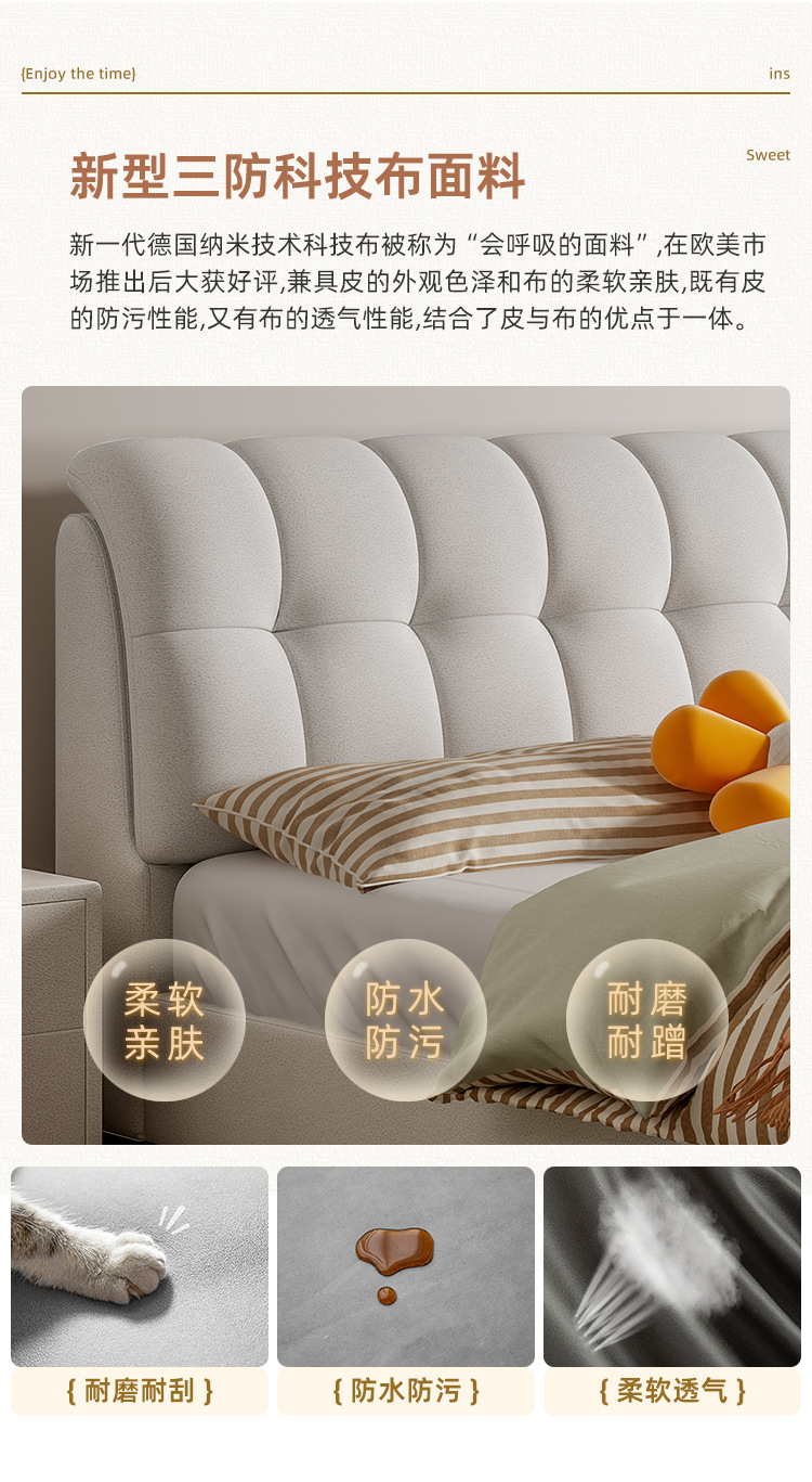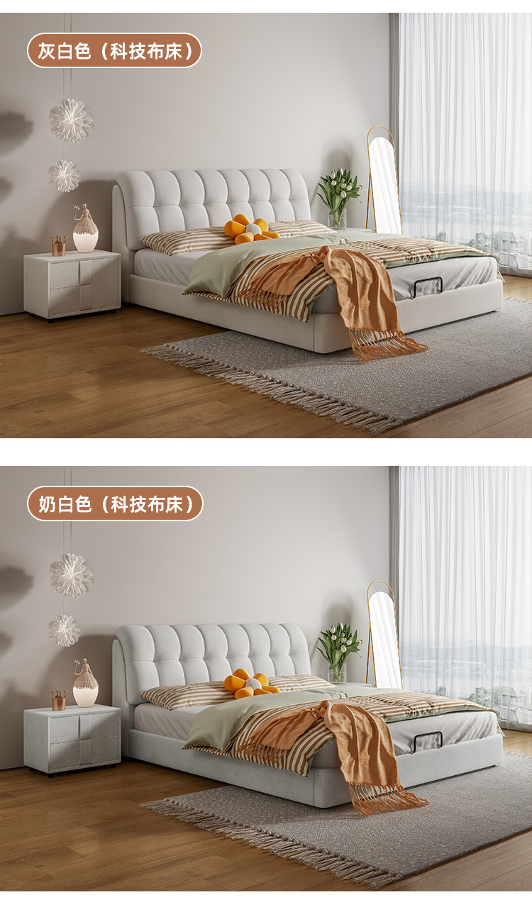 크림 스타일 기술 천 북유럽 현대 간단한 빛 럭셔리 1.8 m 더블 마스터 침실 작은 아파트 1.5 m 기술 천 침대스토어 가기