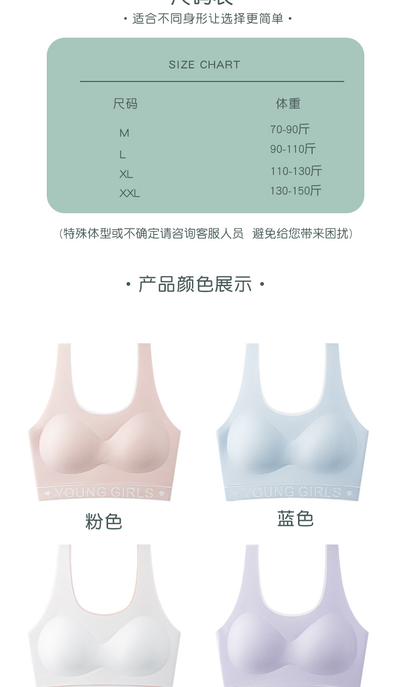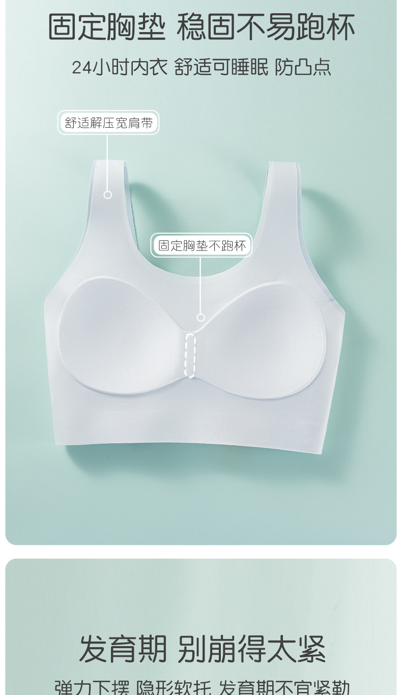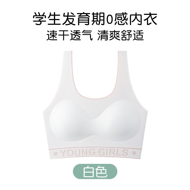 여자 중학교와 큰 아이들을위한 발달 속옷 고등학생 tracless Bra 고정 컵 포장 가슴 조끼 얇은