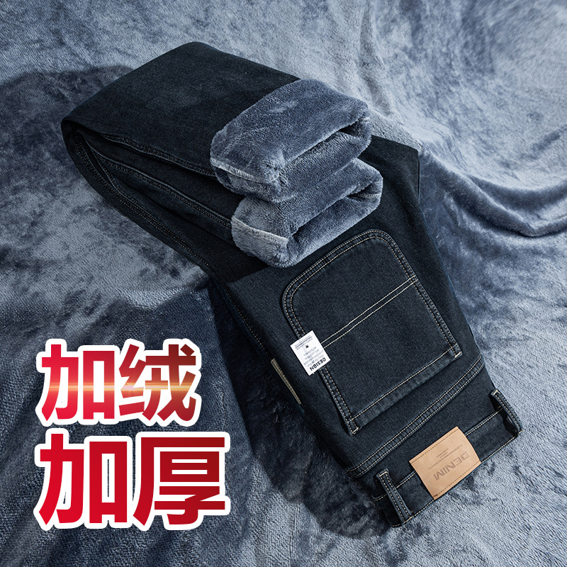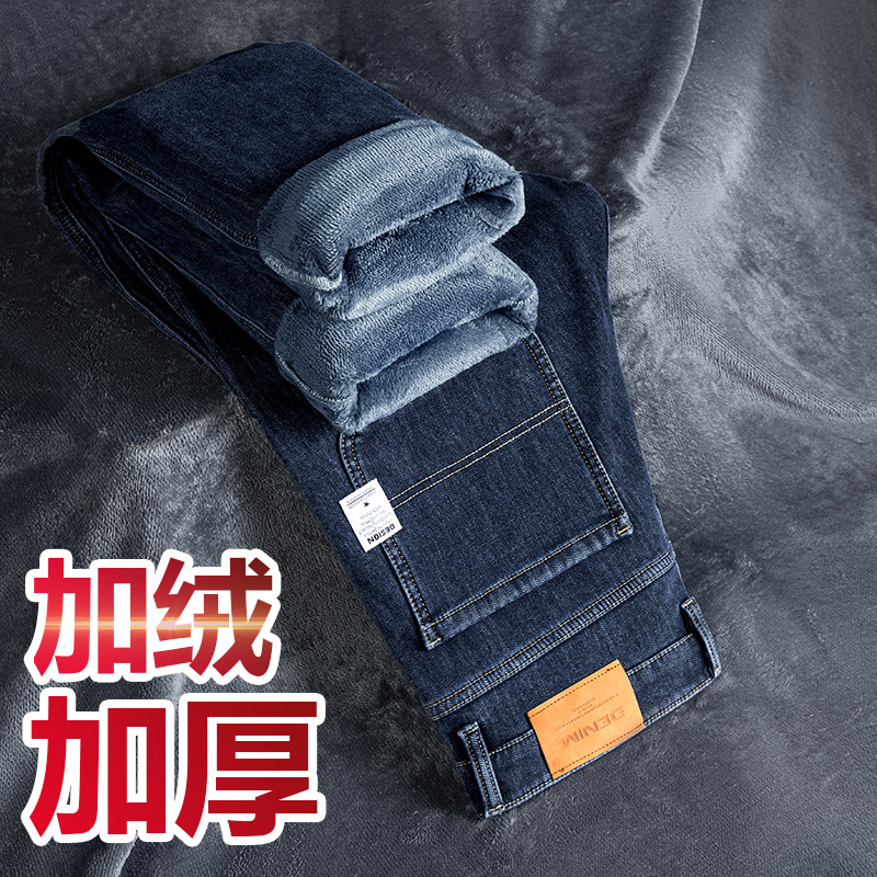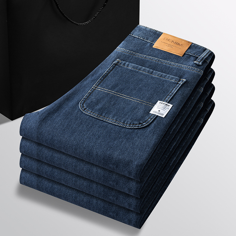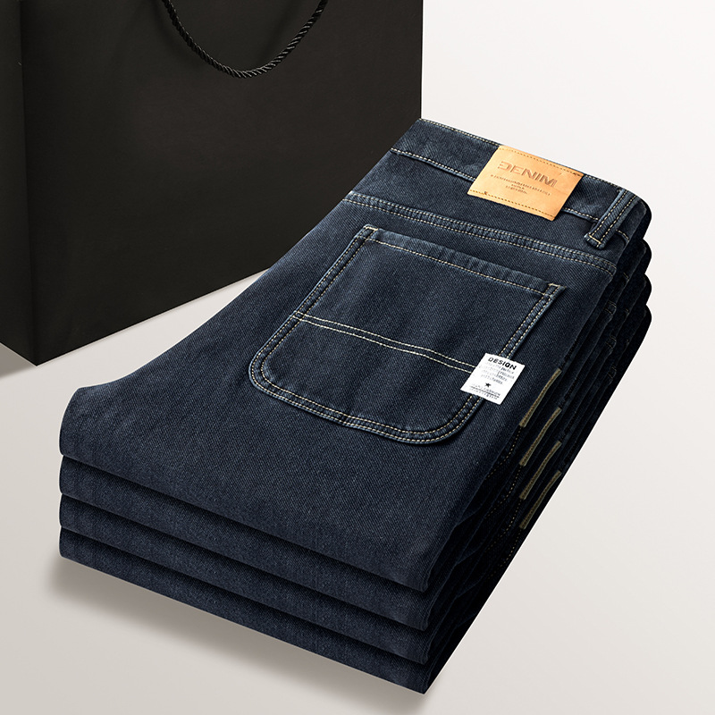 젊고 중년 남성 청바지 봄과 가을 두꺼운 중고 허리 스트레이트 바지 하이 엔드 패션 트렌디 한 청바지 남성 캐주얼스토어 가기