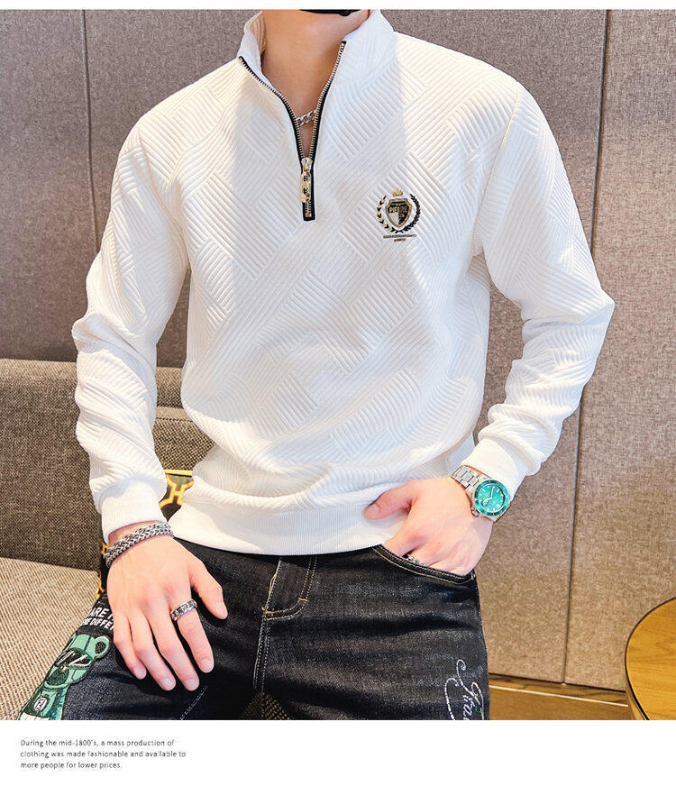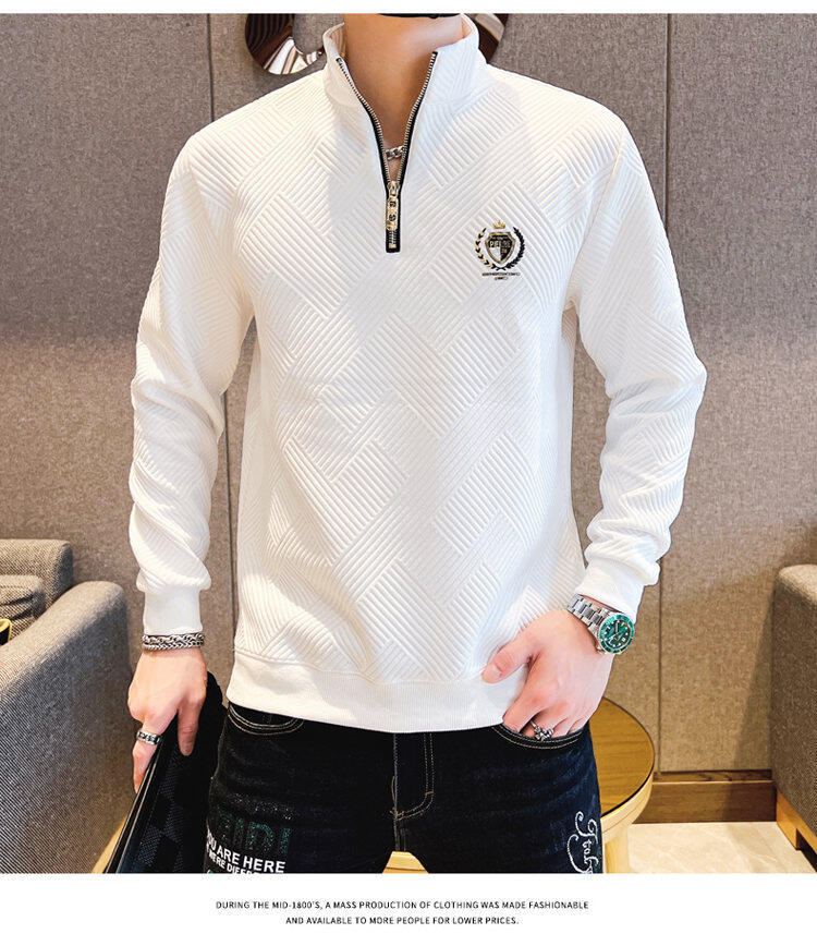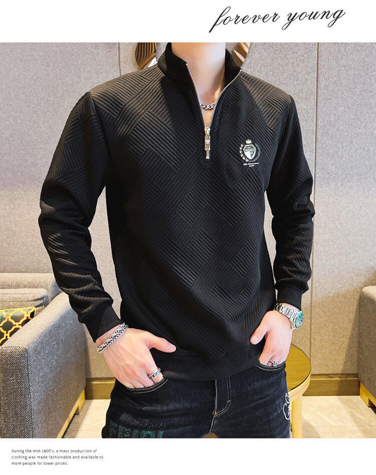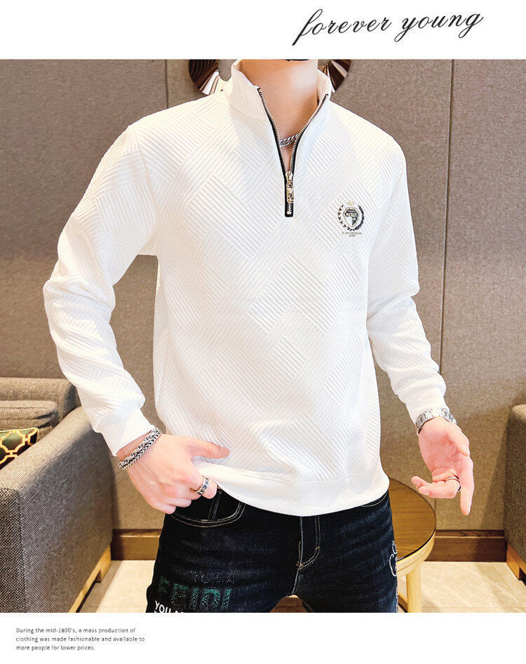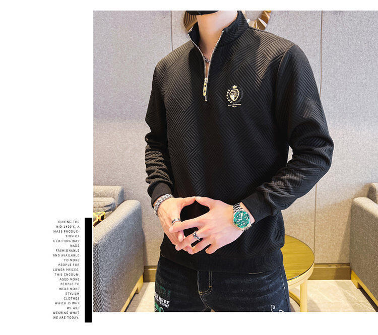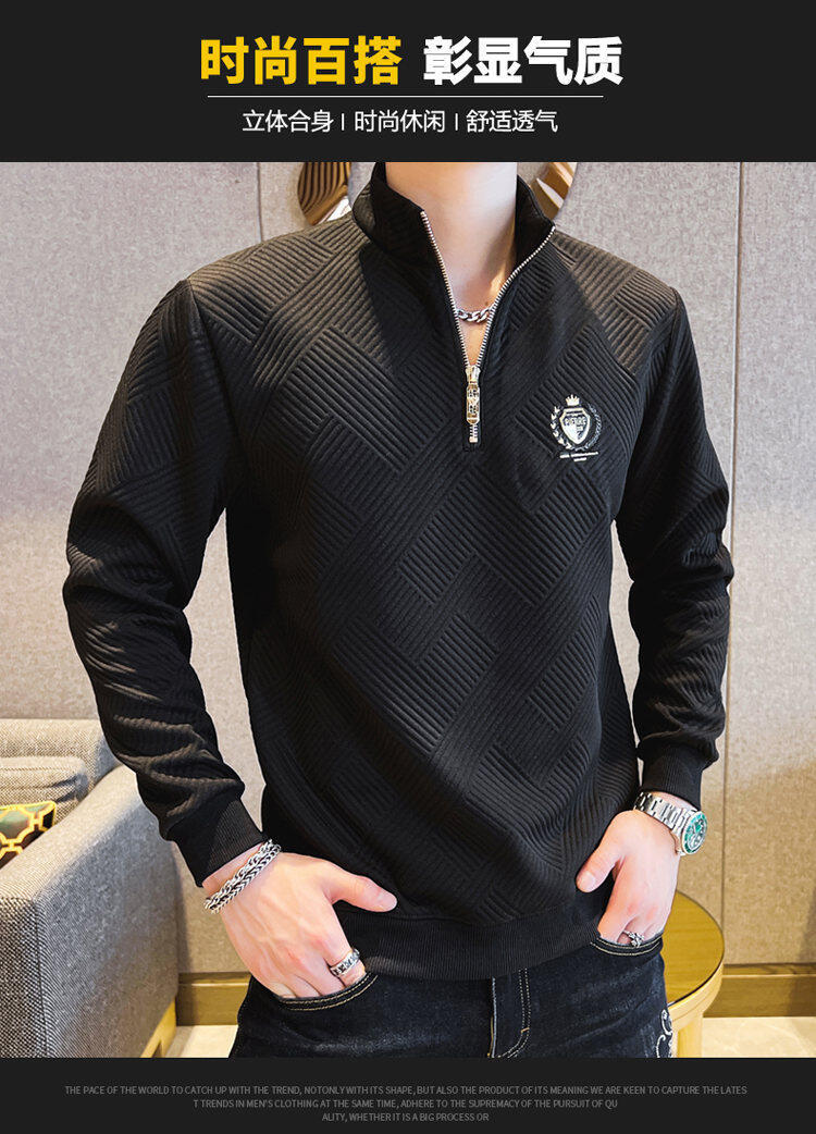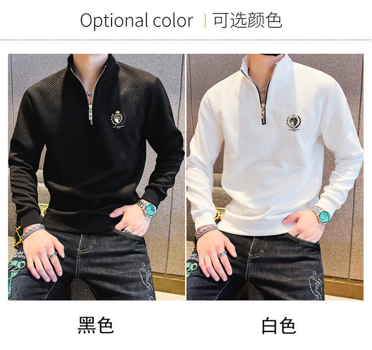 봄과 가을 새로운 남성 가을 수직 칼라 지퍼 트렌디 브랜드 스웨트 셔츠 유럽 유럽 긴 소매 캐주얼 슬림 핏 트렌디 탑