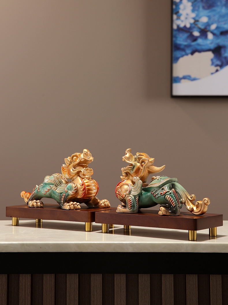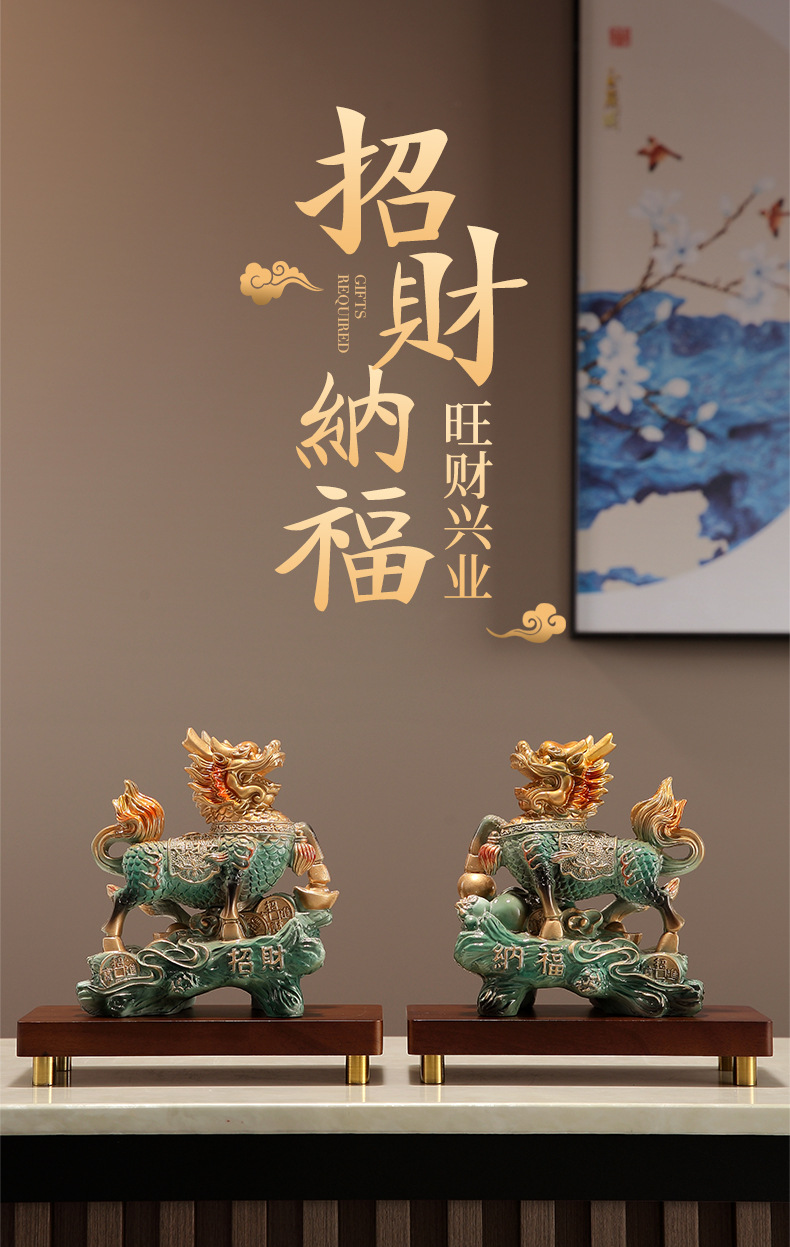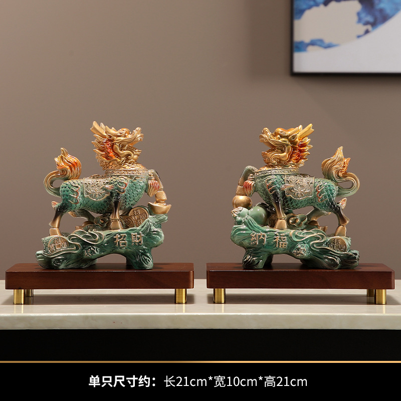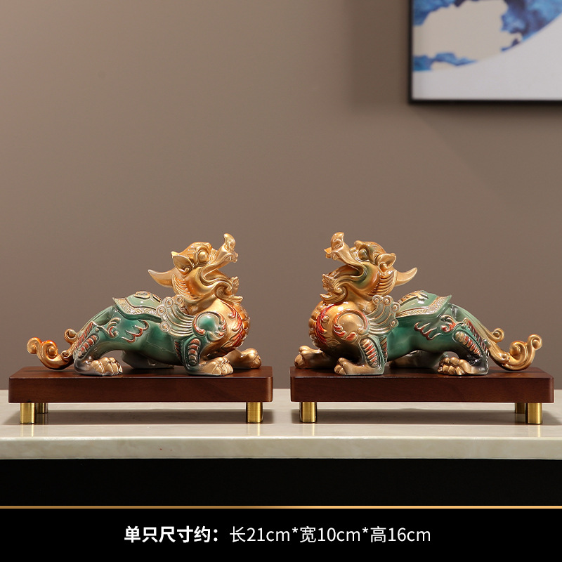 Rui Beast Kirin 페어 새로운 중국 스타일 타운 하우스 장식품 거실 입구 와인 캐비닛 TV 캐비닛 사무실 장식 선물 배달스토어 가기