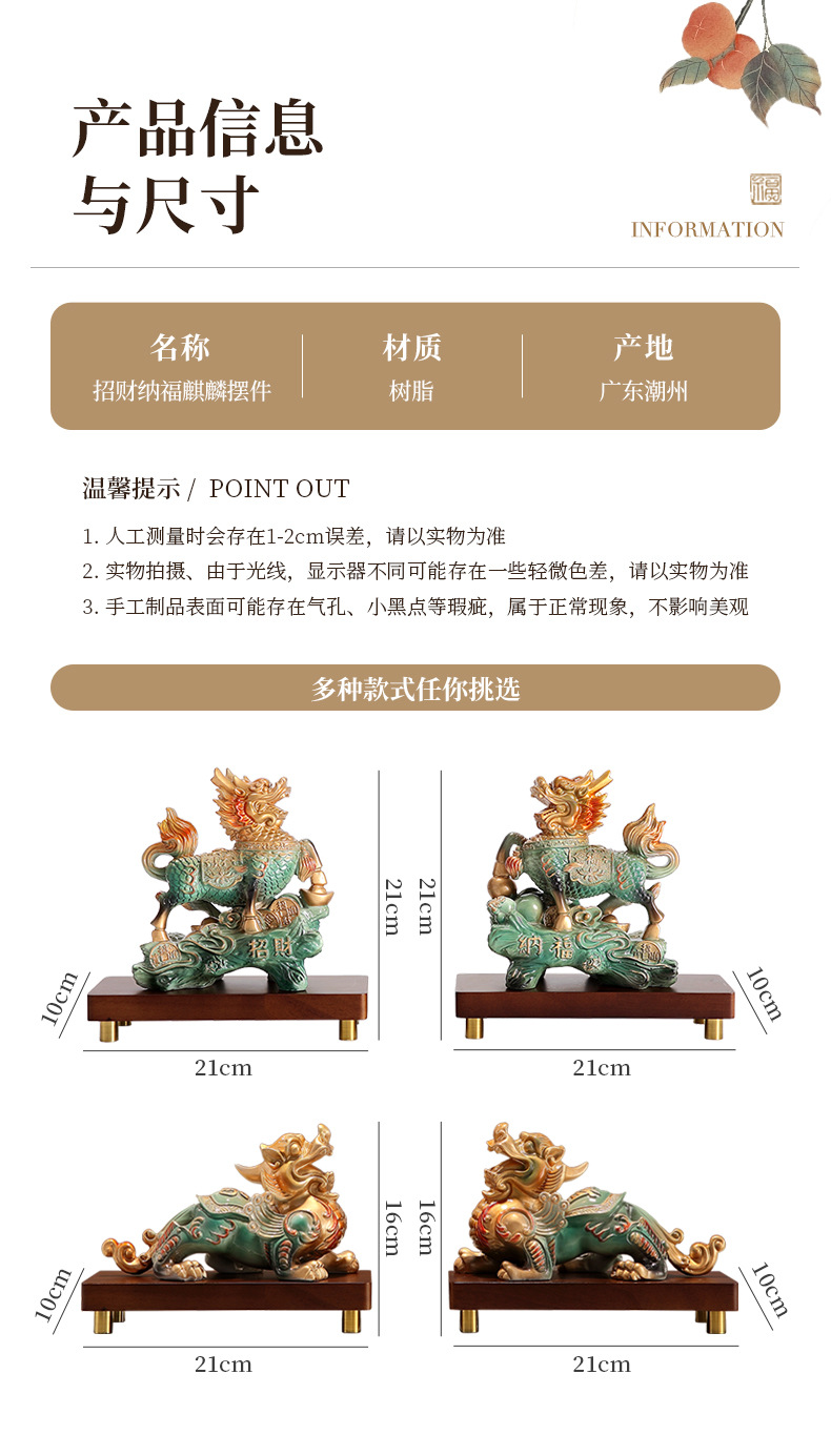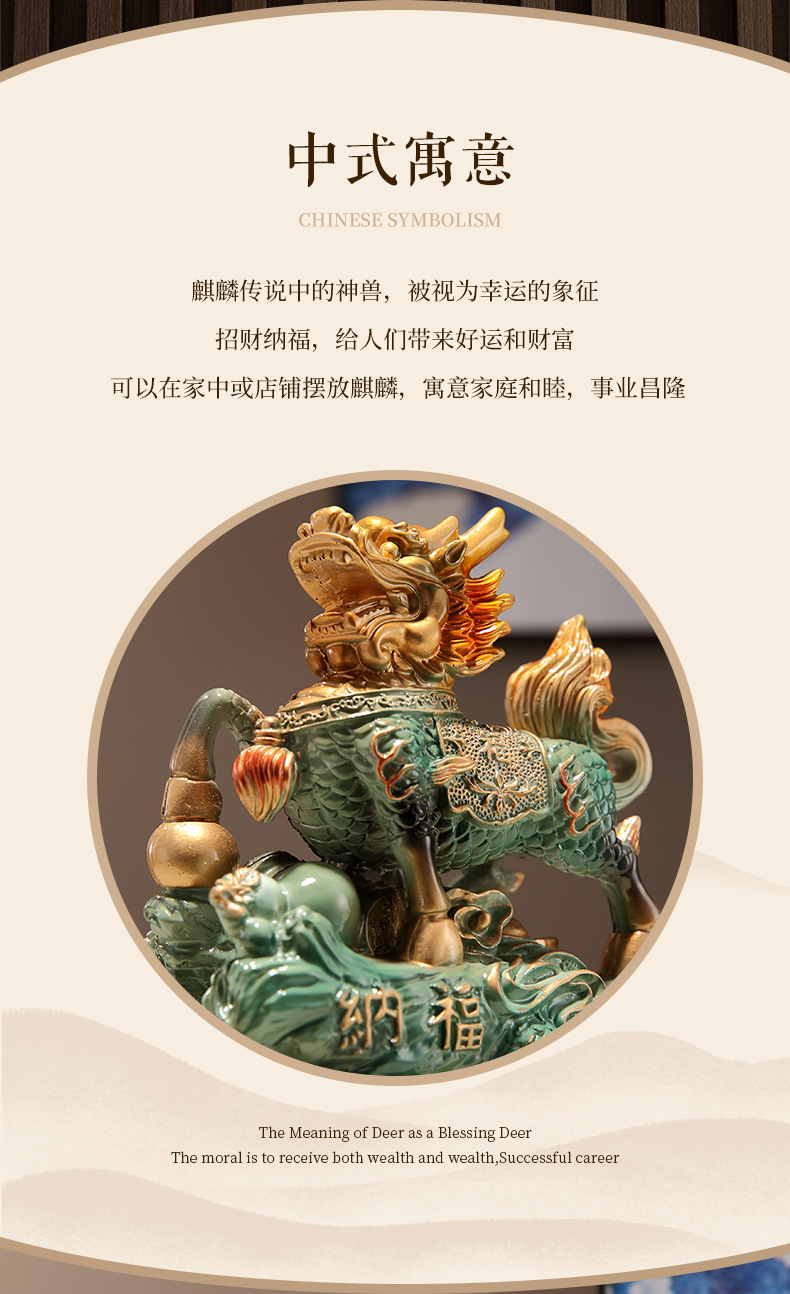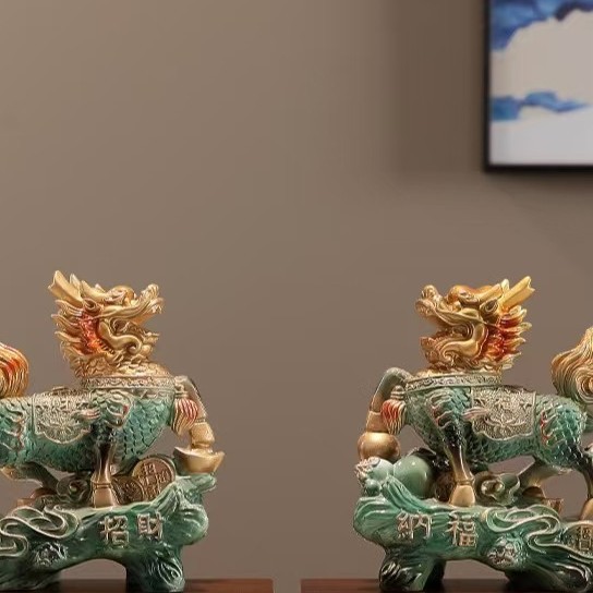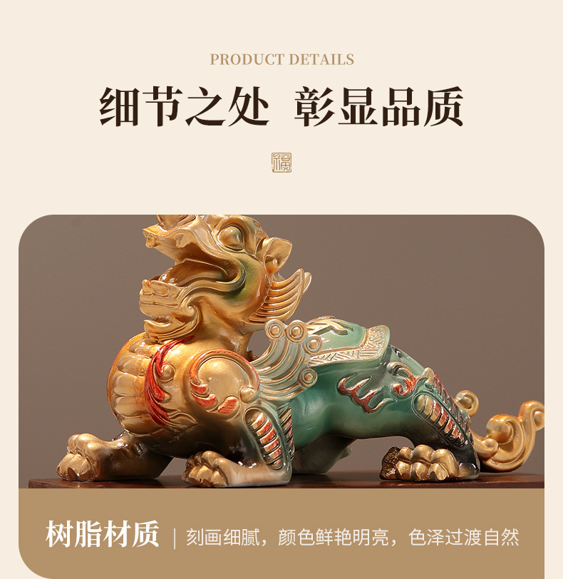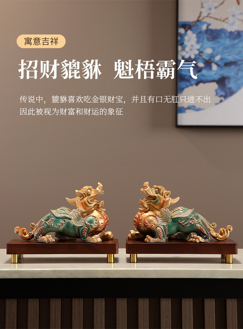 Rui Beast Kirin 페어 새로운 중국 스타일 타운 하우스 장식품 거실 입구 와인 캐비닛 TV 캐비닛 사무실 장식 선물 배달스토어 가기
