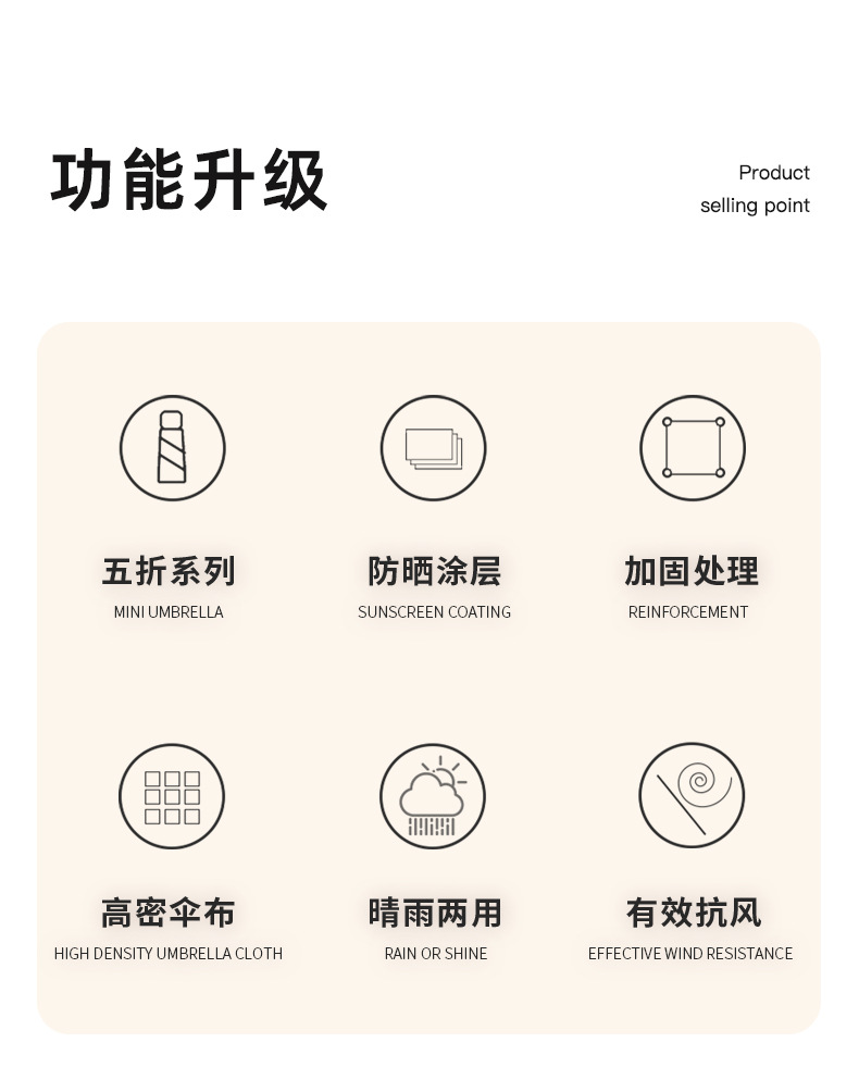 • 고급 카드 우산 + PU 파우치 – 베이지