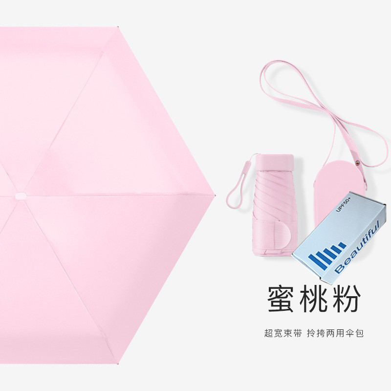 • 고급 카드 우산 + PU 파우치 – 복숭아 핑크