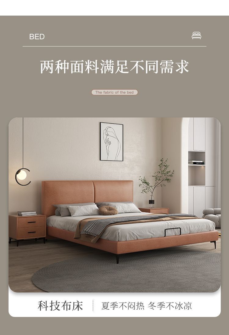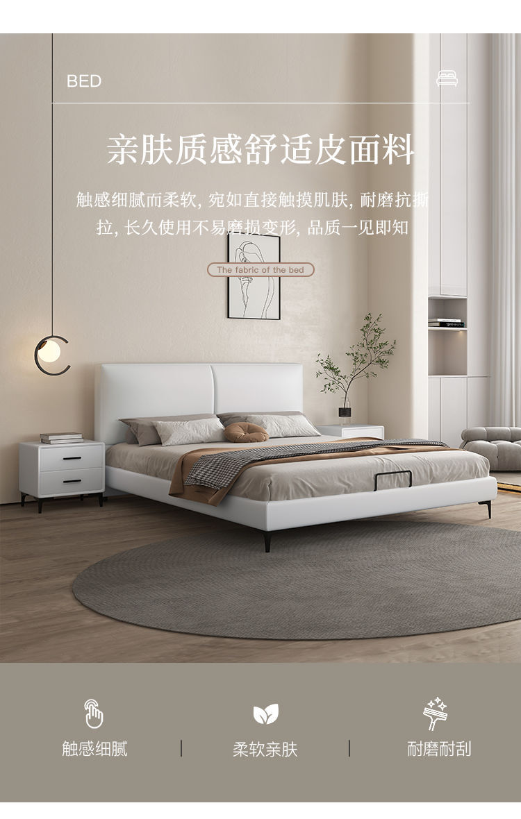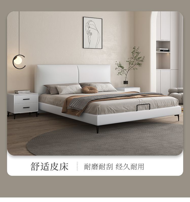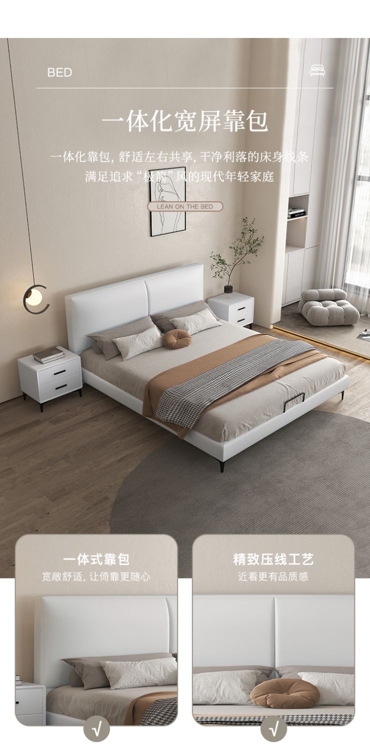 현대 간단한 가죽 침대 이탈리아 스타일 가벼운 고급 스타일 생태 가죽 침대 1.8 m 기본 및 두 번째 침실 프레임 구조 기술 천 침대