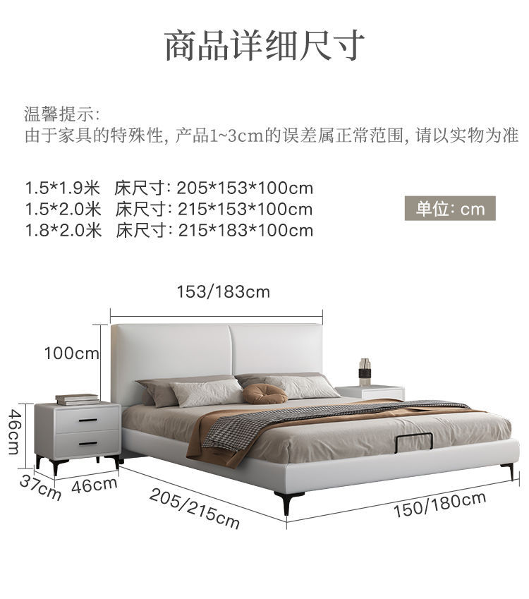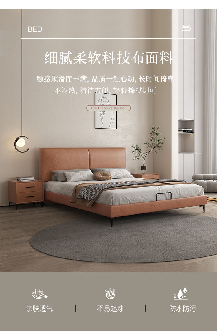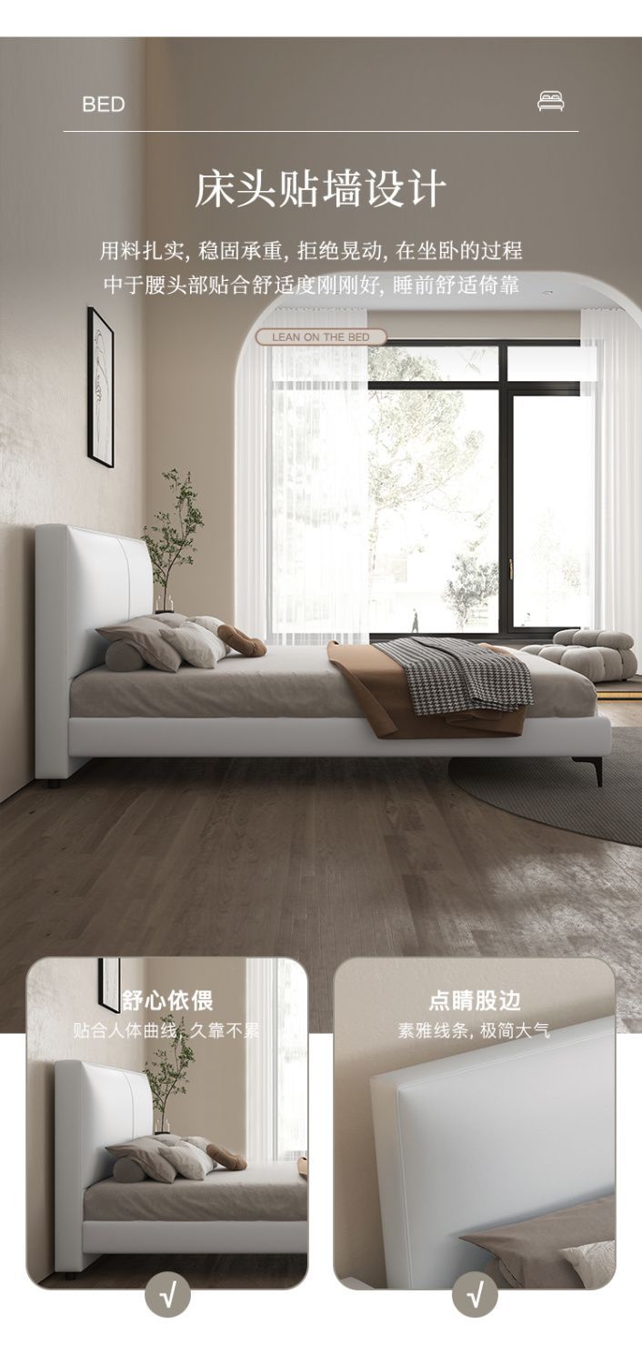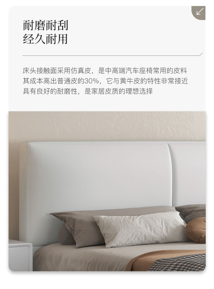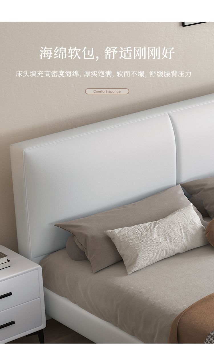 현대 간단한 가죽 침대 이탈리아 스타일 가벼운 고급 스타일 생태 가죽 침대 1.8 m 기본 및 두 번째 침실 프레임 구조 기술 천 침대