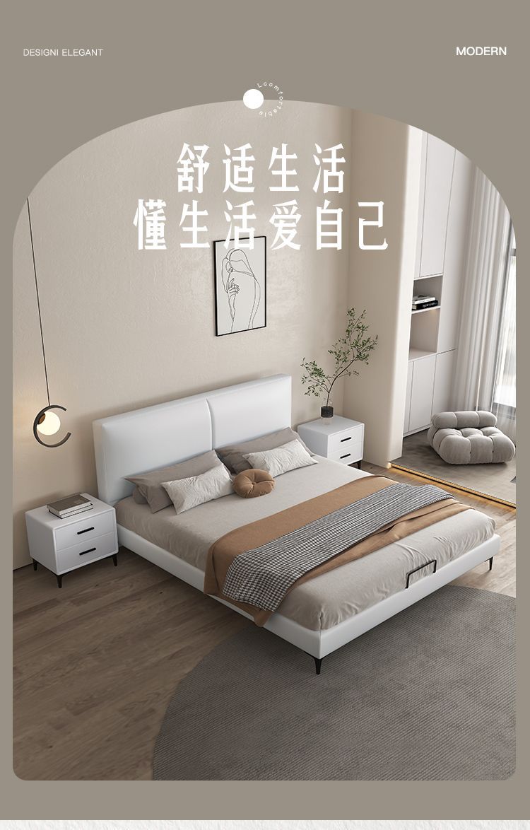 현대 간단한 가죽 침대 이탈리아 스타일 가벼운 고급 스타일 생태 가죽 침대 1.8 m 기본 및 두 번째 침실 프레임 구조 기술 천 침대스토어 가기