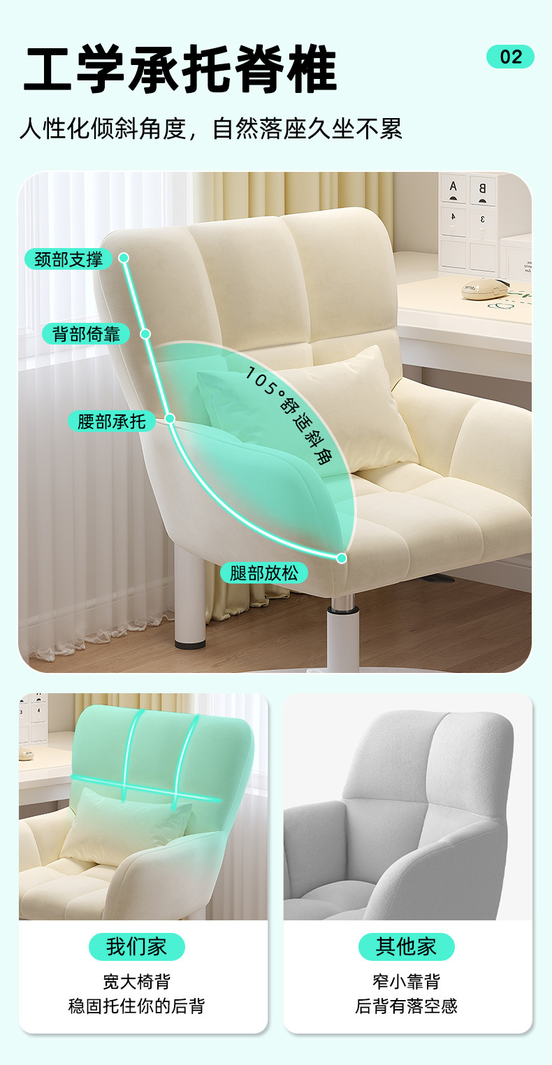 컴퓨터 의자 홈 편안한 소녀의 침실 메이크업 의자 기숙사 학생 책상 좌식 등받이 회전 의자