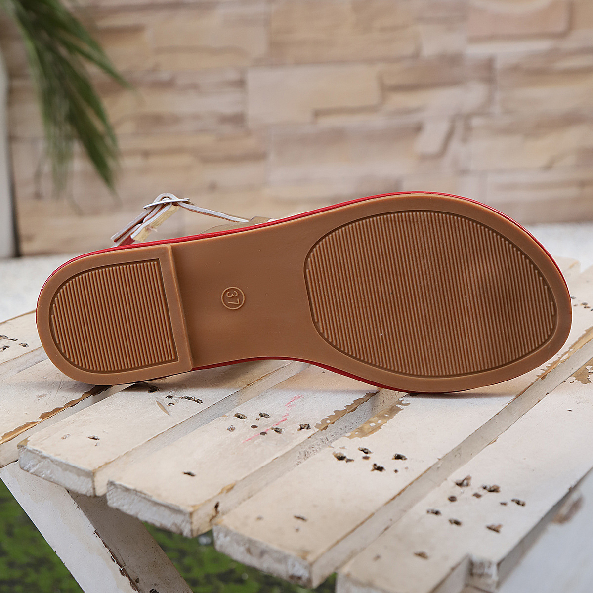 유럽과 미국의 새로운 여름 대외 무역 도매 짠 발가락 샌들 패션 단색 헤링본 플랫 비치 샌들