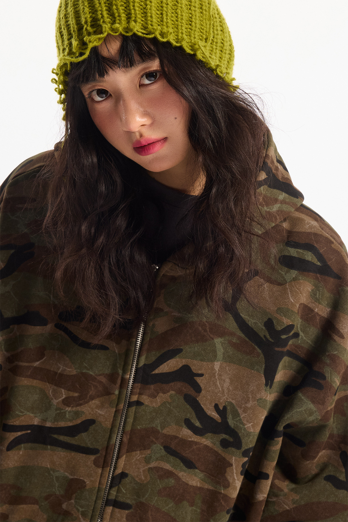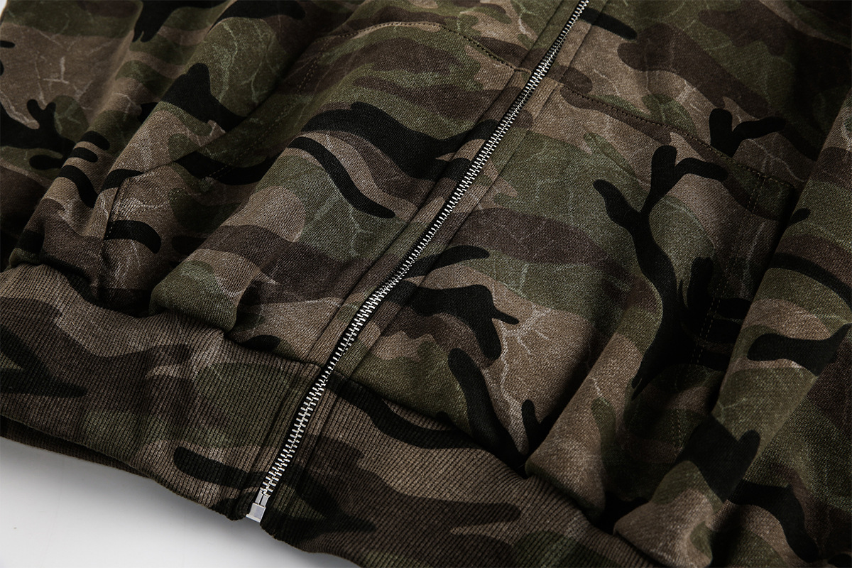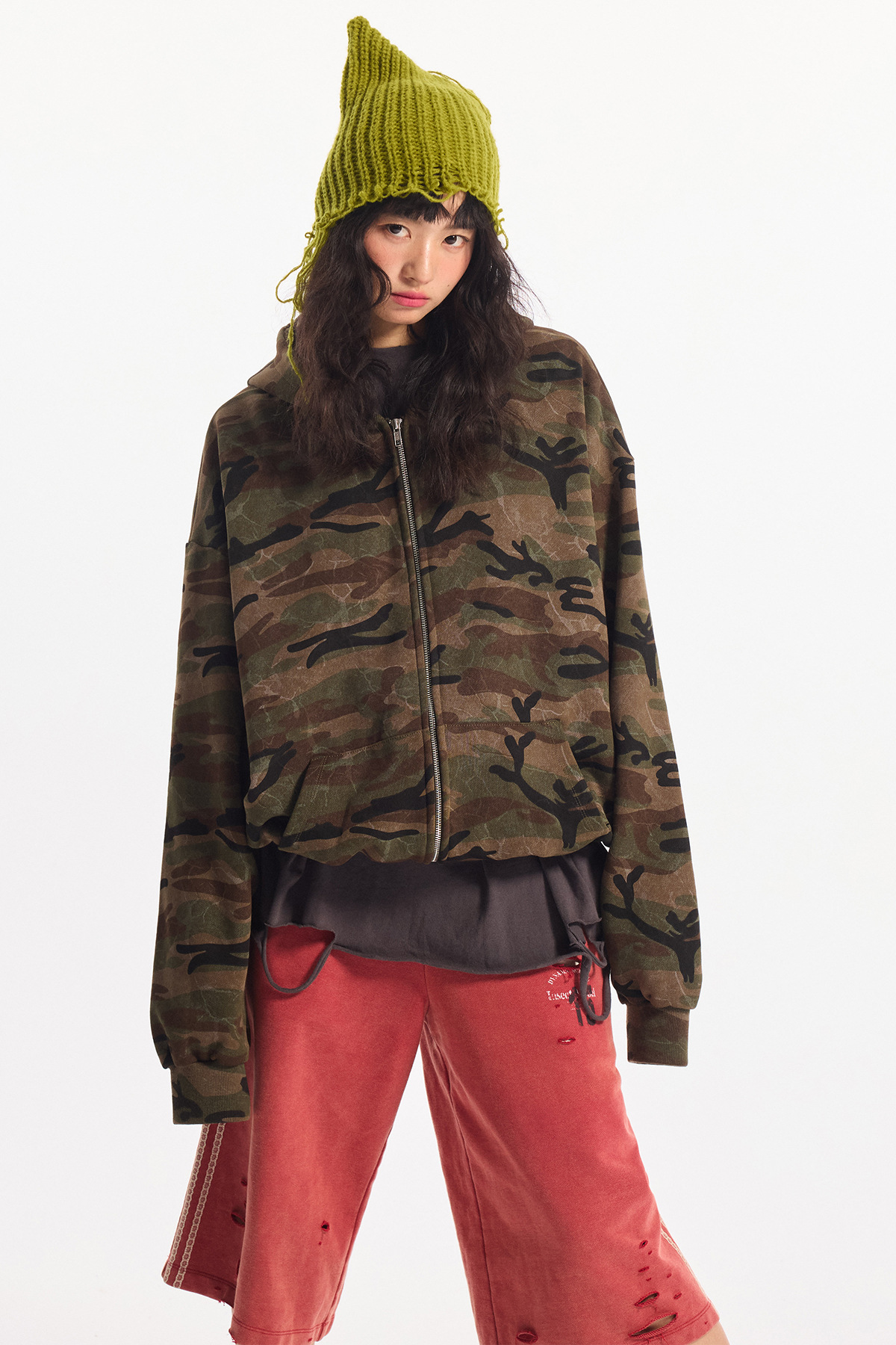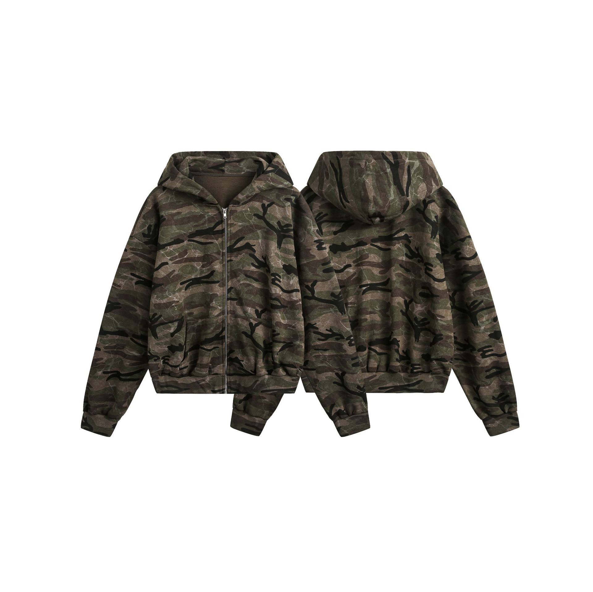 Jiayi 도서관 남자 2025 봄 새로운 미국 거리 위장 후드 재킷 커플 카디건 지퍼 스웨터스토어 가기