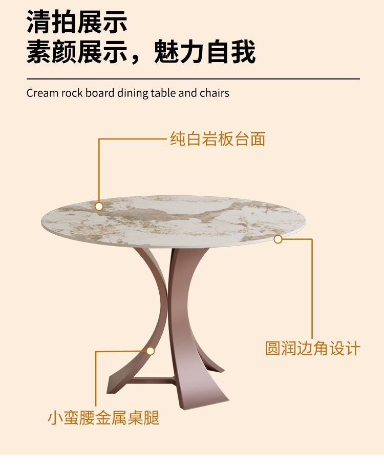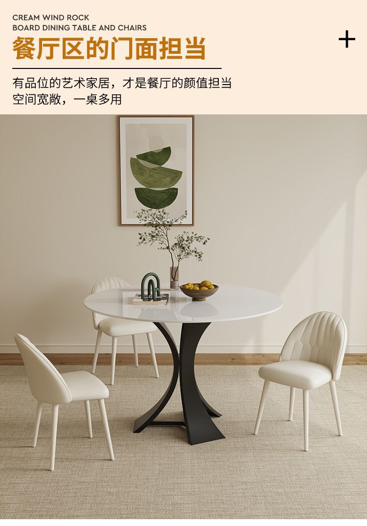 라운드 다이닝 테이블 델리 펑 록 플레이트 다이닝 테이블 순수 화이트 거실 간단한 아이보리 화이트 스타일 작은 아파트 다이닝 테이블 새로운스토어 가기