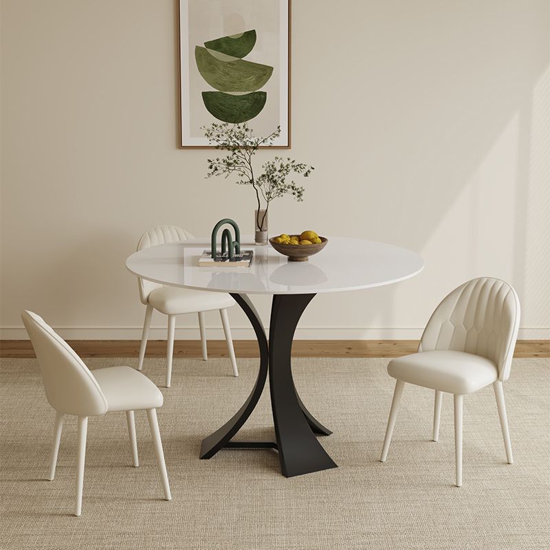 라운드 다이닝 테이블 델리 펑 록 플레이트 다이닝 테이블 순수 화이트 거실 간단한 아이보리 화이트 스타일 작은 아파트 다이닝 테이블 새로운