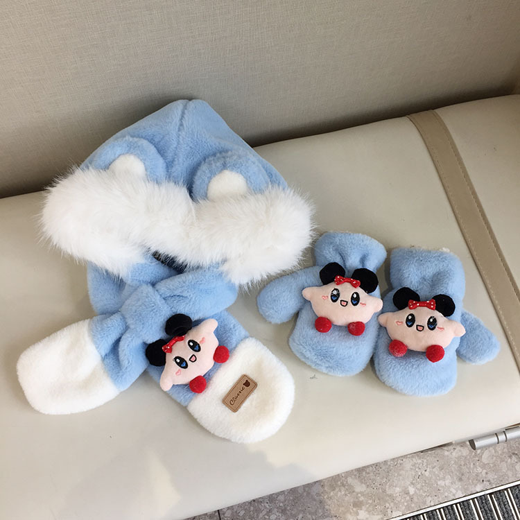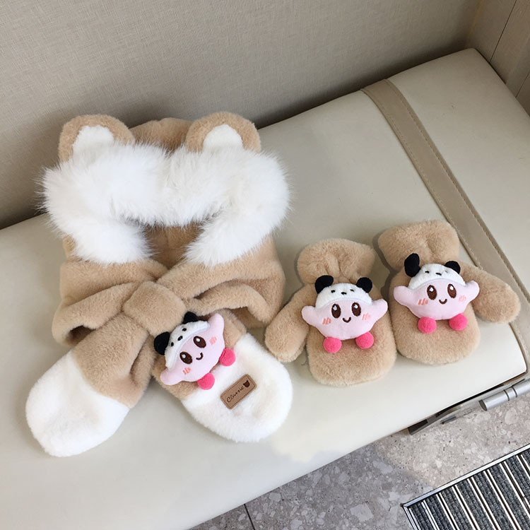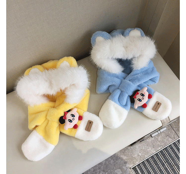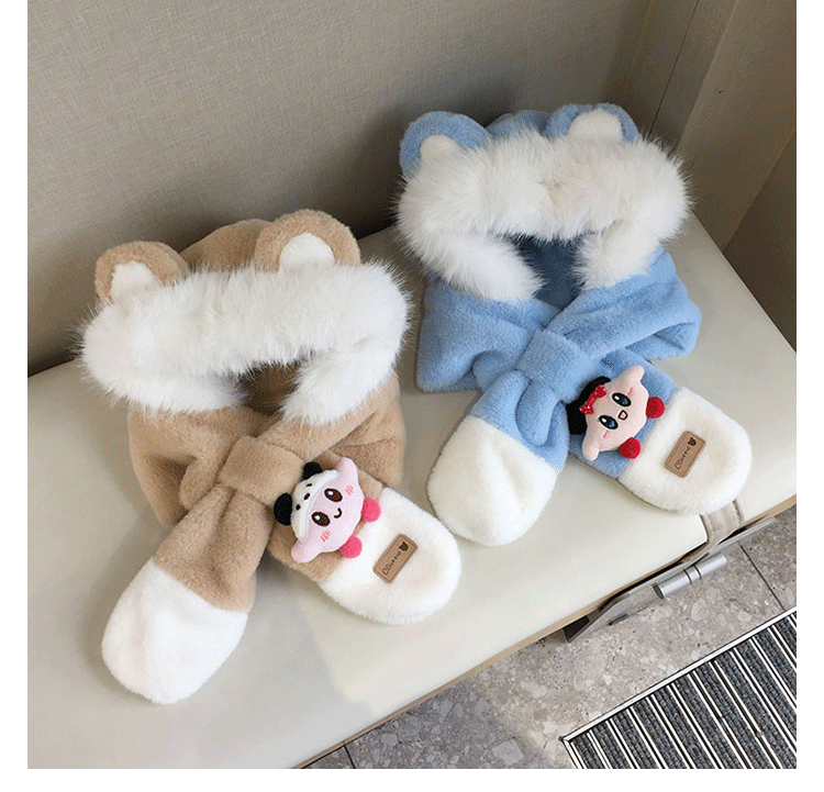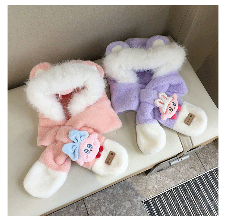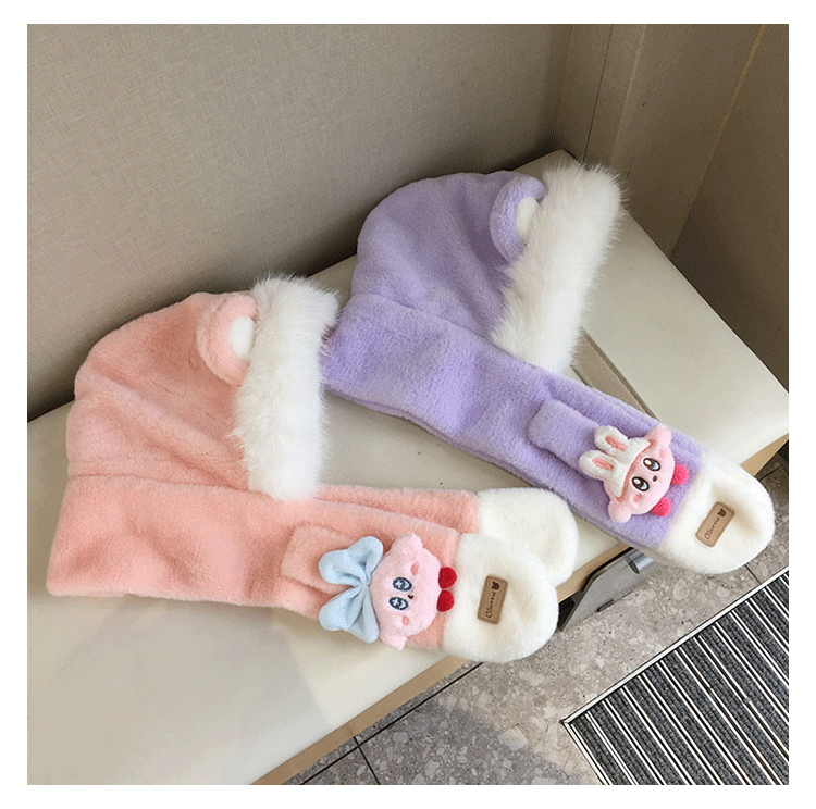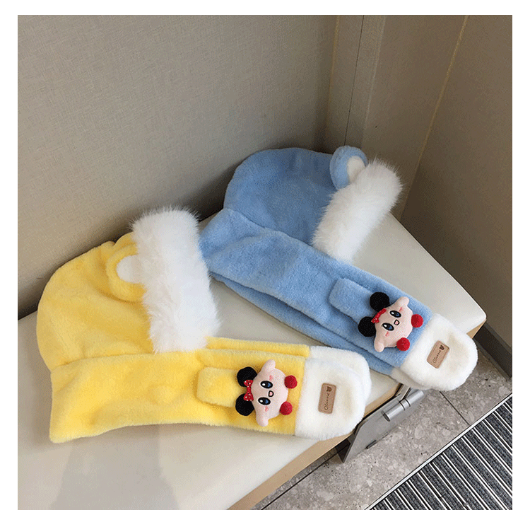 어린이 겨울 따뜻한 귀여운 만화 모자 스카프 귀 보호 귀여운 기모 두꺼운 모자