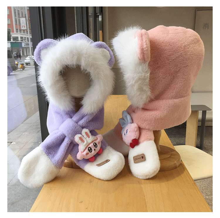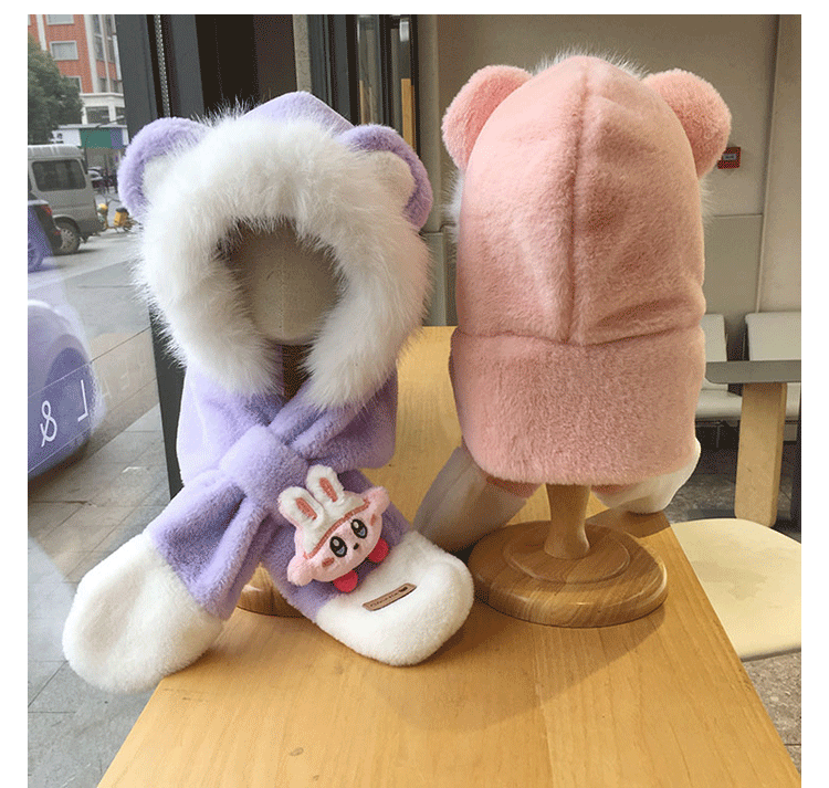 어린이 겨울 따뜻한 귀여운 만화 모자 스카프 귀 보호 귀여운 기모 두꺼운 모자스토어 가기