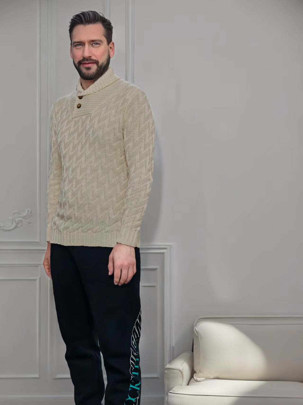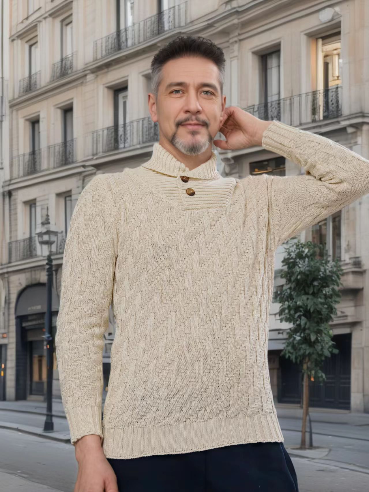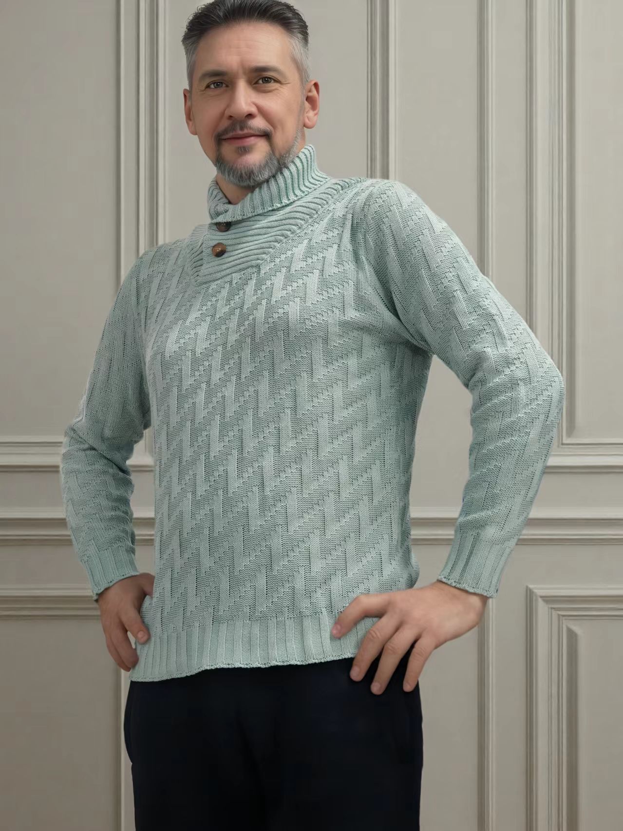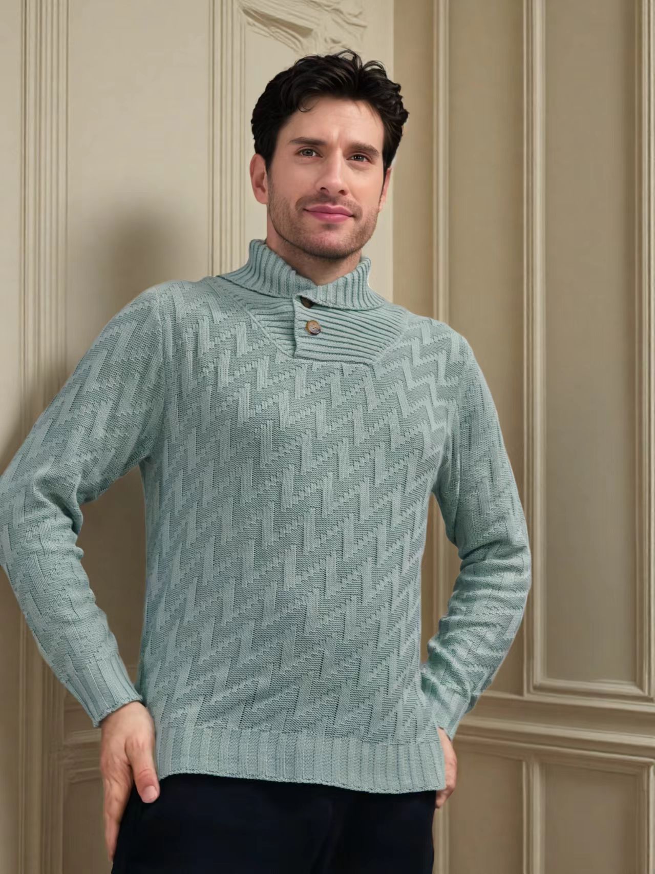 2025 국경을 넘는 유럽과 미국 남성 스웨터 아마존 니트 풀오버 패션 라운드 넥 슬림 스웨터 남성복스토어 가기