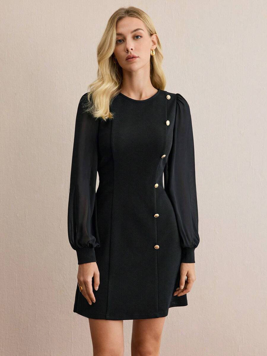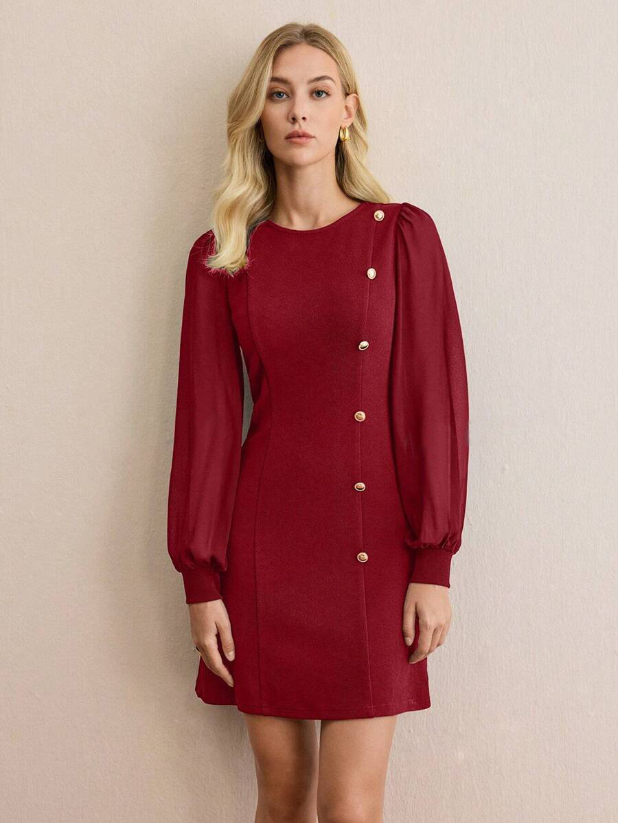 국경 간 대외 무역 유럽과 미국 여성 의류 아마존 2025 봄 둥근 목 네일 버클 슬림 긴 소매 단색 원피스스토어 가기