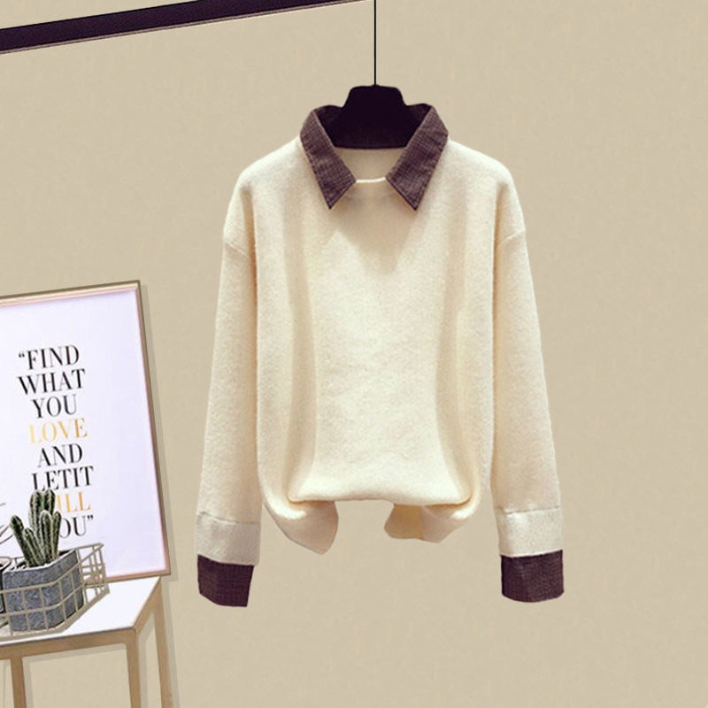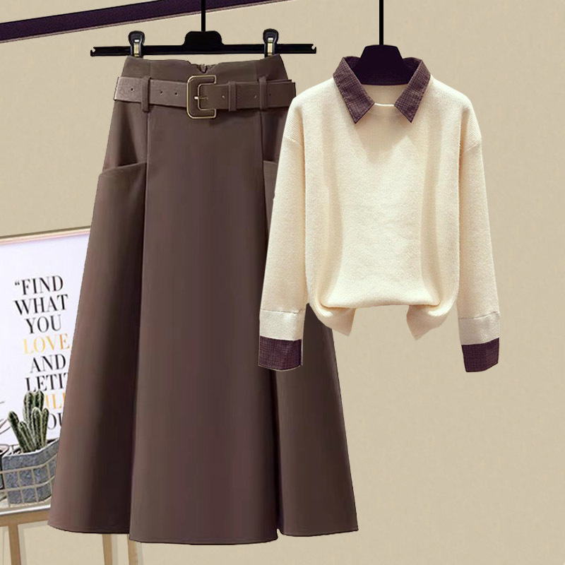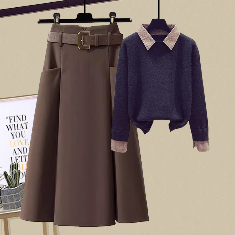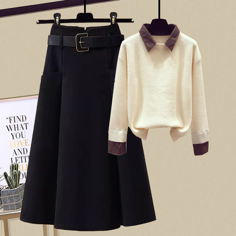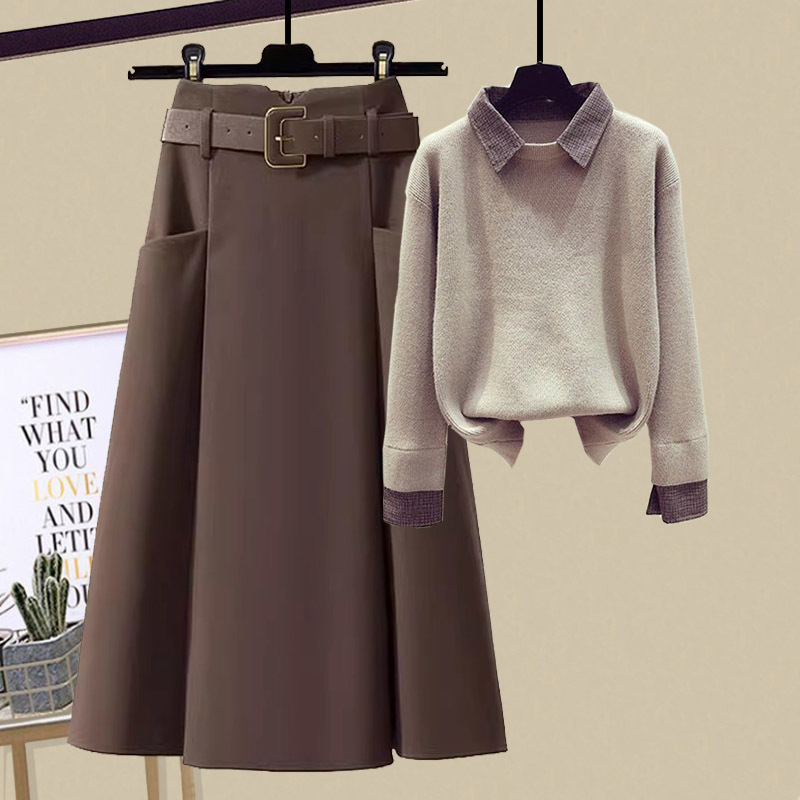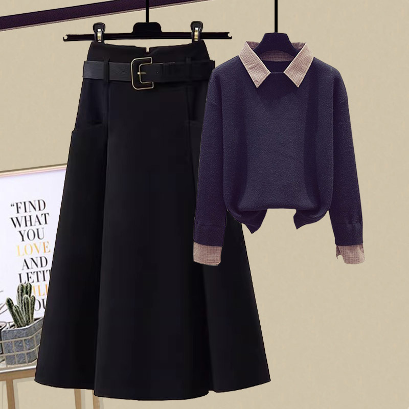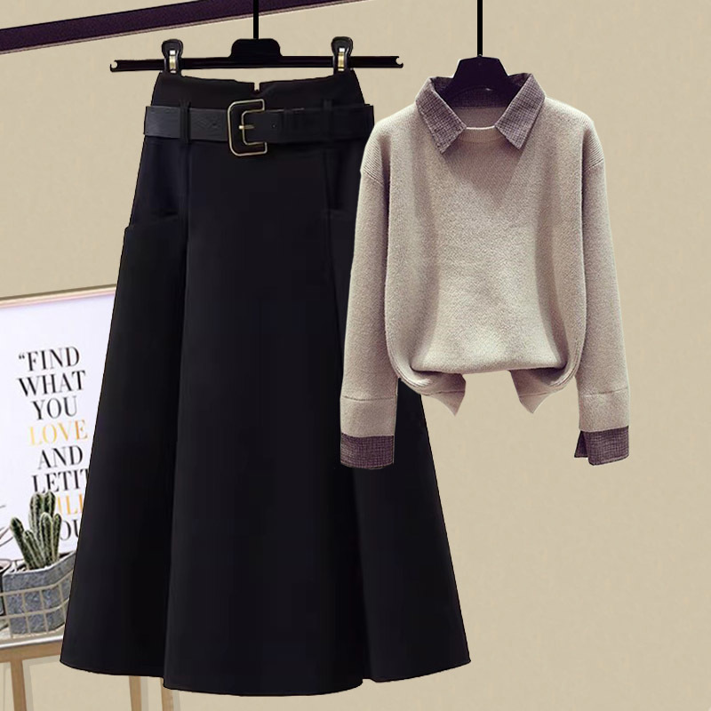 하이 엔드 라이트 럭셔리 여성 세트 2025 봄 새로운 가짜 투피스 니트 스웨터 울 스커트 투피스 세트스토어 가기